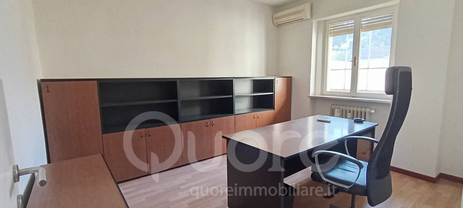 Via Savorgnana angolo Via Cavour ufficio di circa 110 mq. posto al secondo piano, composto da 4 vani più il servizio e ripostiglio.<br> <br> NOTE:<br> Ufficio molto luminoso<br> Pavimenti in legno<br> Travi a vista <br> Termoautonomo<br> Climatizzato