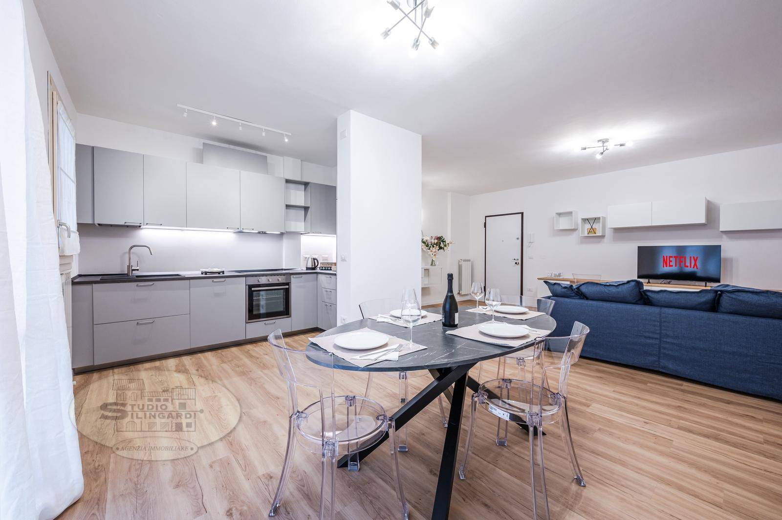 In elegante palazzina residenziale servita da ascensore , affittiamo appartamento completamente e finemente arredato , composto da:<br><br>Ingresso in pranzo soggiorno con angolo cottura , disimpegno notte , due camere matrimoniali , due bagni e terrazzo; garage e cantina al piano interrato<br><br>La posizione è comoda per raggiungere i servizi principali e le attività commerciali del centro, ma allo stesso tempo gode di una buona privacy.<br><br>Riscaldamento autonomo , porta blindata , infissi in doppio vetro.<br><br>Info e visite STUDIO SILINGARDI