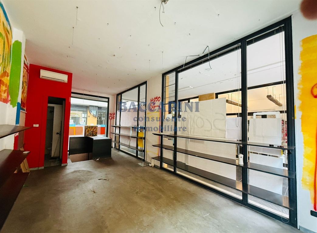 In zona di passaggio, si affitta ampio negozio di circa mq 93 al piano terra con vetrina e munito di canna fumaria. Ultima attività presente rosticceria e gastronomia da asporto. Spese condominiali circa Euro 30,00 all'anno. Richiesta fideiussione bancaria. L'immobile è intestato a persona giuridica, quindi il canone di locazione sarà soggetto ad IVA. Pronta consegna.