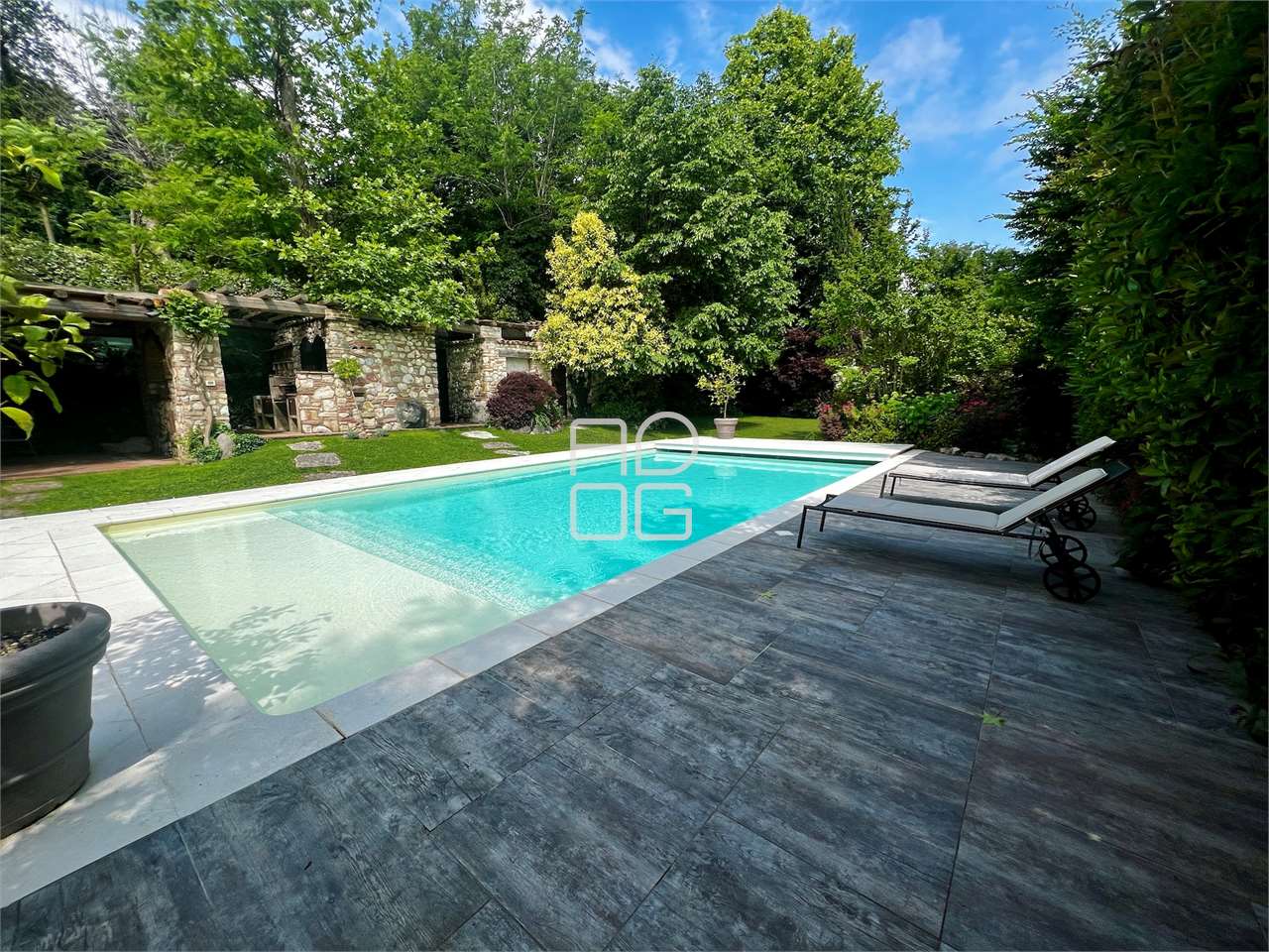 Posta alle porte del paese di Desenzano, la villa indipendente gode di un ingresso riservato all'interno di un contesto lussuoso. Percorrendo il viale di accesso esclusivo si arriva all'ingresso dell'abitazione. L'esterno molto curato dispone di due posti auto coperti e rimessa attrezzi, separati dal giardino di proprietà esclusiva. Il parco gode di una cucina esterna completa, di una zona pranzo per 12 persone, di una piscina e di una zona coperta con camino. L'ingresso della villa da piano terra conduce alla zona notte che dispone di tre grandi camere matrimoniali di cui una con bagno privato, completa il reparto notte un ulteriore bagno ed una zona lavanderia. Dalla bella scala in legno e ferro battuto si accede all'ampia zona living nella quale è stata concepita una zona pranzo, salotto con camino, una cucina in muratura, un bagno per gli ospiti ed una terrazza che accoglie un tavolo per 10 persone. All'ultimo piano un bagno con doccia ed uno studio con letto per gli ospiti. L'abitazione è arredata con gusto ed è pronta per essere abitata sin da subito. Restiamo a disposizione per ulteriori informazioni o sopralluoghi.
