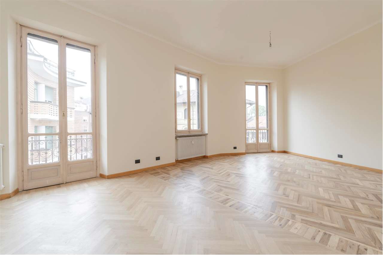 Zona Crimea - Con vista sulla Mole Antonelliana, i monti e la colina; Appartamento di generosa metratura ristrutturato nelle pavimentazioni in legno, si compone da ingresso salone triplo angolare, tre camere da letto, cucina arredata a nuovo con ampia zona pranzo, doppi servizi, lavanderia, cantina. Possibilità di box auto in cortile. Predisposizione aria condizionata. Libero. Preferenza a trasferisti.