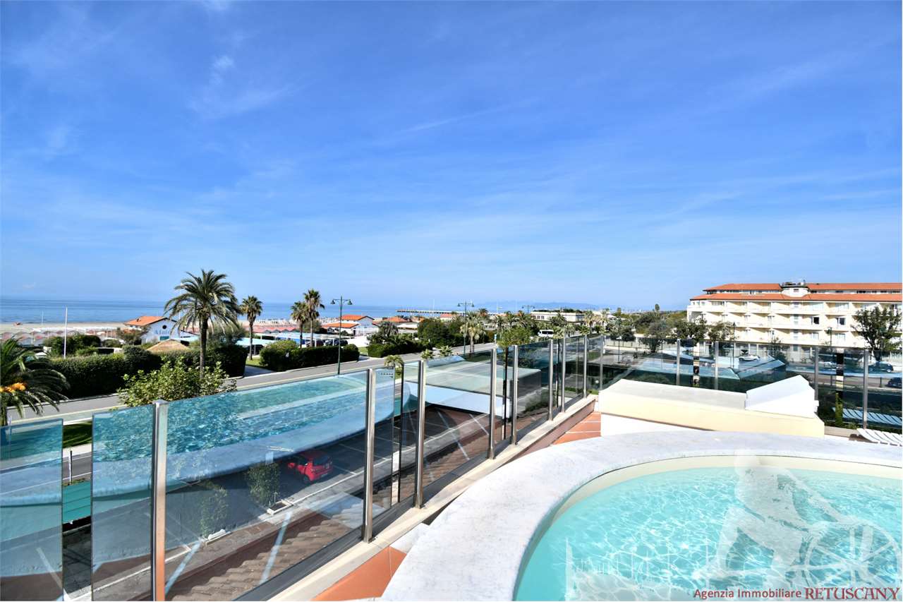 Disponibile LUGLIO AGOSTO 2025 - Attico fronte mare al primo e secondo piano, con accesso indipendente sia da scala esterna che da ascensore, in villa bifamiliare, con solarium e vasca idromassaggio. Vista mare unica, adiacente a Forte dei Marmi. Al piano primo: tre camere matrimoniali con bagno privato (due con doccia e uno con vasca), disimpegno. Al piano secondo: ampio soggiorno pranzo, cucina abitabile, bagno di servizio, terrazza panoramica perimetrale. Con impianto di aria condizionata e di allarme, internet, post auto interni alla proprietà.