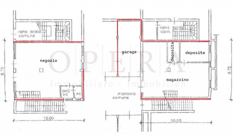 Bolzano - Via Druso: Negozio di 90 mq al piano terra in Via Druso, a Bolzano, con magazzino e deposito di ulteriori 90 mq al piano inferiore. Il magazzino è facilmente accessibile tramite rampa carrabile condominiale. Completa la proprietà un garage di 30 mq, confinante con il magazzino e particolarmente comodo per operazioni di carico e scarico. Possibilità inoltre di due posti auto esterni siti nel piazzale antistante il negozio. Per informazioni Opera Immobiliare tel. 0471 214267 - 347 8109914 www.operaimmo.it