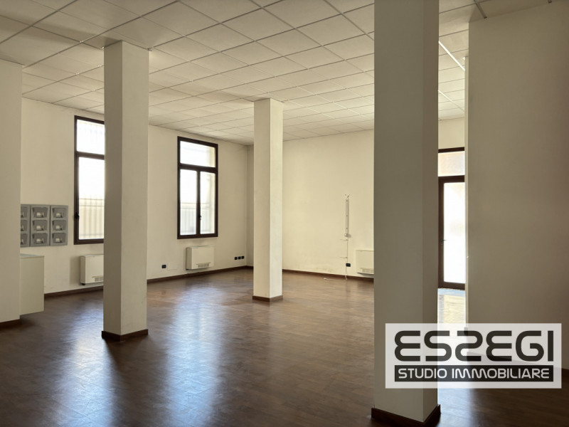 In contesto direzionale-commerciale ufficio al piano terra con grandi vetrate fronte Piazza principale, trattasi di mq 140 da poter distribuire internamente in base alle esigenze concordando i lavori con la proprieta' . Riscaldamento e raffrescamento a pavimento . Disponibile fin da subito. Considerando la vicinanza al Tribunale e l'ampio parcheggio a disposizione si presta per sedi professionali-studi legali-commercialistici o di architettura.<br>Per maggiori informazioni o visite sul posto contattate il n tel 3336471628
