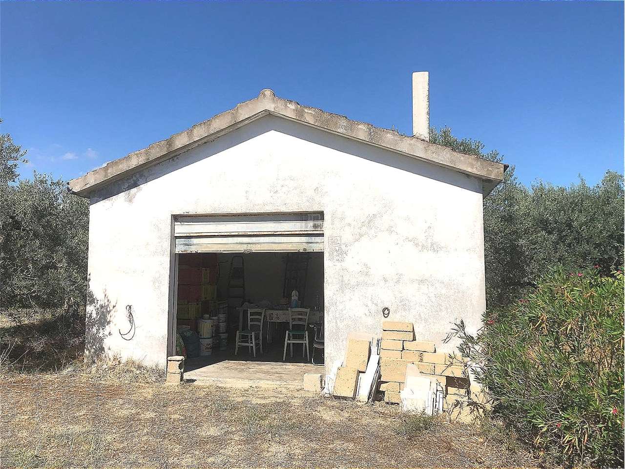 Uliveto ben esposto con circa 90 piante di ulivo e piccolo fabbricato di circa 20 mq dotato di camino e acqua comunale a pochi chilometri dal paese.
