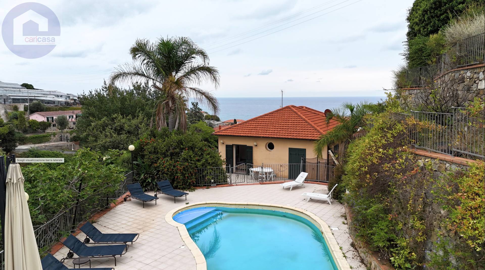 In posizione esclusiva e riservata, immersa nella tranquillità della prima collina di Riva Ligure, proponiamo in vendita una splendida villa di recente costruzione con finiture moderne e ambienti ampi, curati in ogni dettaglio.<br><br>La proprietà si sviluppa su una superficie di circa 300 mq, disposta su due livelli, ed è circondata da una corte privata di circa 200 mq, con accesso carrabile tramite cancello automatico e sistema di videosorveglianza, ideale per parcheggiare comodamente più veicoli.<br><br>Al piano primo, la villa accoglie con una luminosa zona living open space, composta da cucina a vista e ampio soggiorno, perfetti per la vita quotidiana e per ricevere ospiti. <br><br>La zona notte comprende quattro spaziose camere da letto e 2 bagni di servizio, inoltre tutte le camere hanno accesso diretto a una terrazza panoramica con vista sul mare e sul verde circostante.<br><br>All’esterno, una veranda coperta, zona barbecue e una piscina privata completano la parte più conviviale della casa, garantendo massima privacy e momenti di totale relax.<br><br>Scendendo al piano terra, troviamo l’ingresso principale, un terzo bagno di servizio, una camera/studio o ripostiglio, un ampio box auto con serranda automatica, e l’elemento più esclusivo dell’immobile: un’elegante area wellness privata. <br><br>Questo spazio è dotato di: piscina interna, vasca idromassaggio, doccia emozionale, sauna e quarto bagno di servizio.<br><br>Un ambiente unico, pensato per chi cerca una casa che sia anche un rifugio di benessere e tranquillità.<br><br>La villa si trova a soli 5 minuti dal mare e da tutti i principali servizi, con un perfetto equilibrio tra riservatezza, comodità e bellezza paesaggistica.