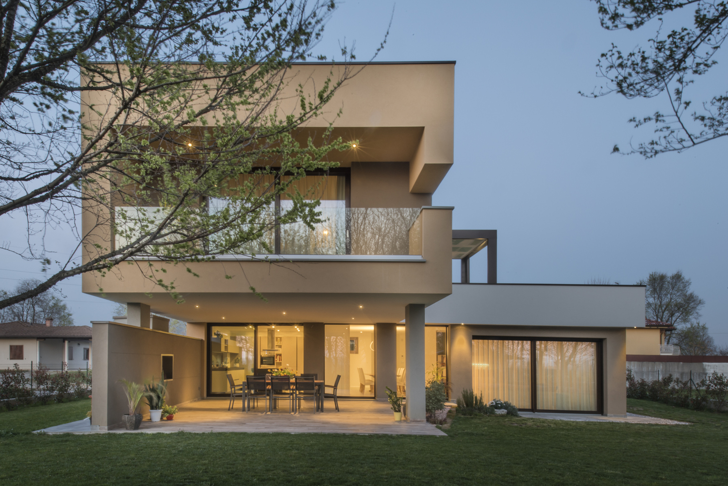 In posizione strategica tra Udine, Palmanova e Grado, meravigliosa villa indipendente dalle forme moderne e dal design ricercato. La casa, edificata nel 2015, è inserita in un contesto residenziale molto verde e tranquillo, si presenta in ottime condizioni di manutenzione e si sviluppa su due livelli per una superficie interna complessiva di mq. 250. Il piano terra è dominato da una generosa zona living con ampie vetrate affacciate sullo splendido giardino piantumato, che regalano viste, colori e luce meravigliosi in tutte le stagioni dell'anno. La cucina, di impronta moderna con ampia isola attrezzata, rimane separata dalla zona soggiorno ma a vista sulla stessa. Completano il piano terra un bagno ospiti/lavanderia, uno studio e la centrale termica. La zona notte, invece, si sviluppa al primo piano ed è composta da due camere matrimoniali, delle quali una padronale con bagno privato e cabina armadio: a questo livello troviamo una bella terrazza/solarium dotata di vasca idromassaggio. La villa, completamente circondata dal verde privato, dispone di un doppio posto auto coperto e di ulteriori posti auto all'interno della proprietà. Viene venduta completa di arredi, elettrodomestici, impianto di antifurto, impianto di climatizzazione e non necessita di nessun lavoro di manutenzione. Da un punto di vista energetico la villa risponde appieno agli standard costruttivi contemporanei ed i costi di gestione sono davvero molto contenuti: è certificata in classe "A4" ed il suo fabbisogno energetico è gestito in modalità totalmente elettrica (non c'è collegamento alla rete del gas), con impianto di riscaldamento a pavimento collegato alle pompe di calore ed all'impianto fotovoltaico di 6 Kw. Di primo livello anche le finiture d'interni, che uniscono qualità e design e rendono questa offerta immobiliare particolarmente accattivante, senza criticità e molto difficile da trovare attualmente sul mercato. Per ulteriori informazioni telefonare in sede.