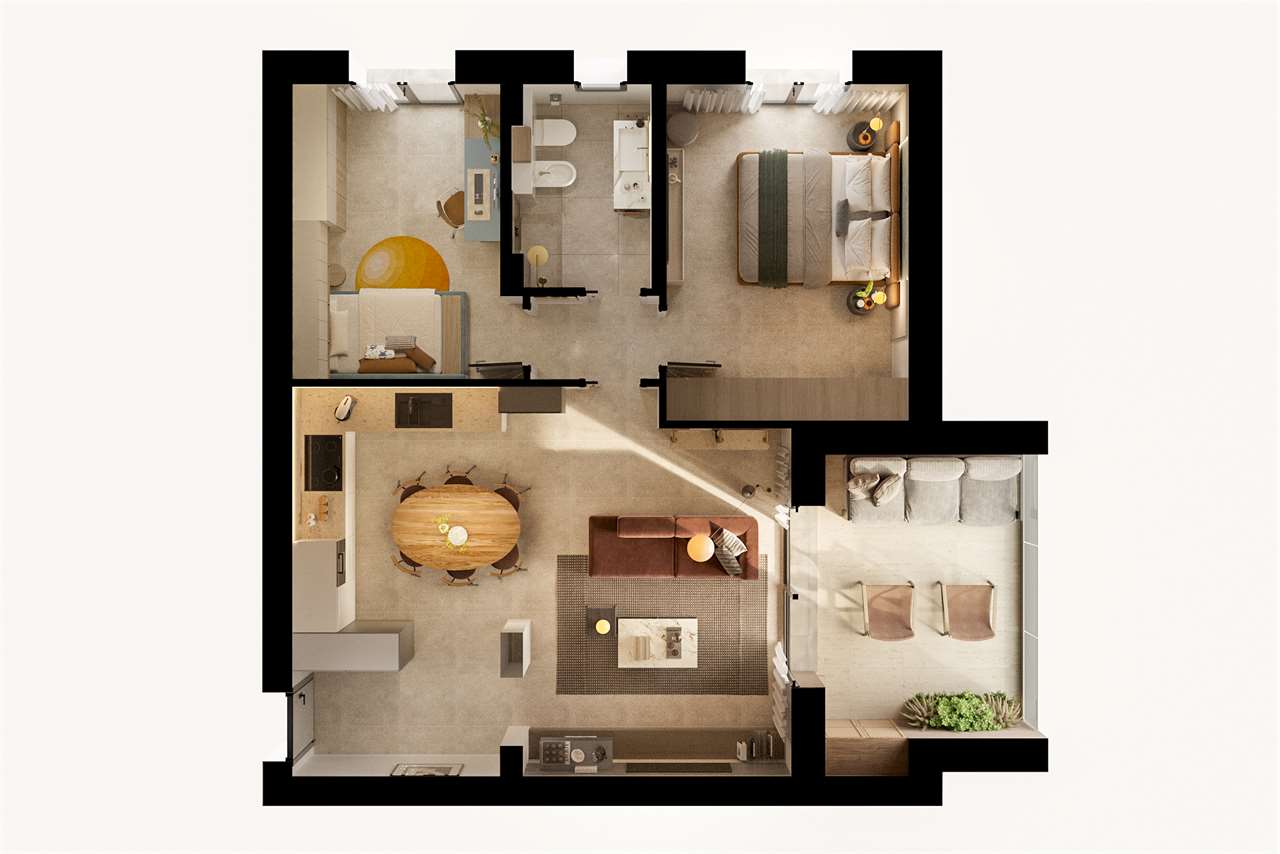 APPARTAMENTO 7 TRILOCALE CON LOGGIA Al secondo piano, servito da ascensore, soluzione composta da ampia zona cucina-pranzo, soggiorno, comoda loggia, camera matrimoniale, camera singola e bagno. Autorimessa di oltre 20 mq. al piano interrato. Le immagini sono state realizzate sulla base del progetto esecutivo con finiture e materiali previsti nel capitolato delle opere. Il nuovo intervento prevede la realizzazione di una palazzina con struttura antisismica, dotata dei più moderni impianti tecnologici, il tutto volto a realizzare unità abitative con alta efficienza energetica. Le caratteristiche attraverso le quali verrà realizzato il fabbricato, comporteranno quindi per i residenti un elevato confort abitativo. In fase di progettazione e realizzazione vi è la possibilità di personalizzazione degli spazi e delle finiture. Tecnici qualificati saranno a disposizione per eventuale studio darredo e posizionamento delle tramezze. Il capitolato prevede, finiture di pregio quali pavimenti in ceramica di grandi formati, tapparelle motorizzate, riscaldamento a pavimento, tramite impianto con pompa di calore, predisposizione impianto aria condizionata, fotovoltaico dedicato per ogni singola unità. Ogni appartamento è dotato di autorimessa, inclusa nel prezzo indicato. Per fissare un appuntamento è possibile chiamare lo 059 7238067 o inviare una mail di richiesta di contatto a info@gabettivignola.it. Sono disponibili ulteriori dettagli visitando il nostro sito internet gabettivignola.it
