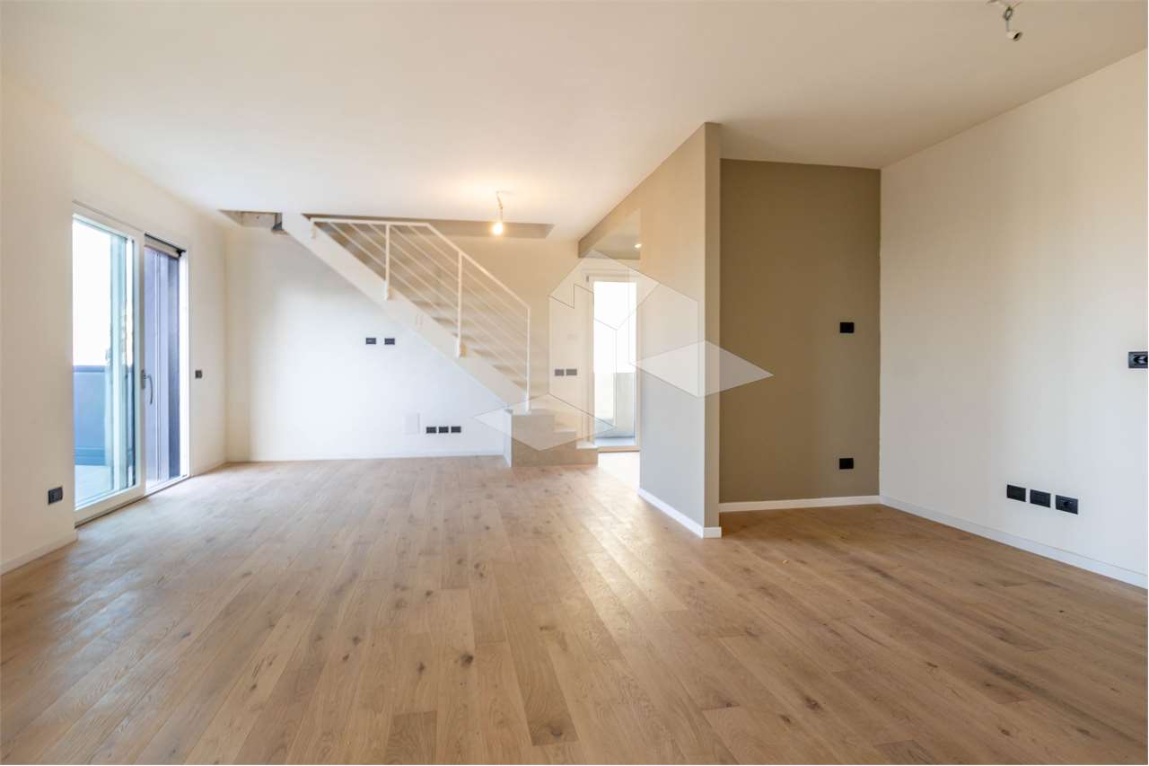 V1284/A - A due passi dal centro storico, proponiamo bellissimo attico su due livelli di mq 135 coperti e oltre 120 mq di terrazzi all'interno di un moderno ed elegante complesso residenziale in classe energetica A3. L'immobile, si compone di una zona living con cucina a vista, due camere da letto, bagno e 70 mq di logge che circondano gli ambienti. Al piano superiore, collegato da scala interna, è presente un open space con bagno da destinare a camera o studio, oltre ad una meravigliosa terrazza di 50 mq. Questo intervento è stato realizzato con i più alti standard qualitativi che pongono particolare attenzione al tema del risparmio energetico. Garage doppio in larghezza e cantina. Nuovo da sfoggiare. Chiamaci per una visita!