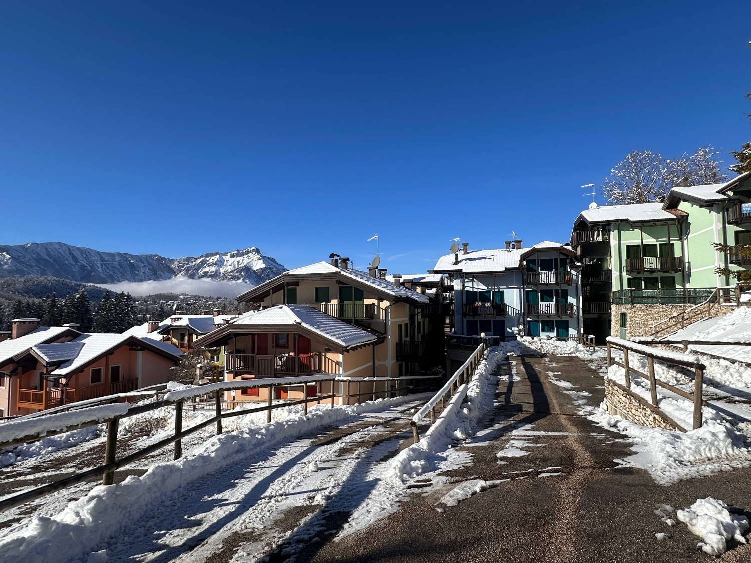 Elegante appartamento con terrazzo panoramico – Lavarone, frazione Cappella In una delle zone più ricercate dell’Alpe Cimbra, nella frazione Cappella di Lavarone, proponiamo in vendita un luminoso appartamento situato al secondo piano di uno stabile recentemente ristrutturato esternamente. Dopo un ingresso indipendente l’immobile si apre su una luminosa zona giorno, impreziosita da un alto soffitto con travi a vista che regala calore e carattere all’ambiente. Da qui si accede a un ampio terrazzo panoramico esposto a sud con vista sulle montagne circostanti. La zona notte è composta da una camera matrimoniale con terrazzino privato ed armadio a quattro ante, una seconda camera con letto a castello e ampia armadiatura, oltre a due bagni: un bagno principale finestrato con velux, dotato di box doccia, e un secondo bagno di servizio, utilizzabile anche come ripostiglio/lavanderia. L’appartamento è dotato di riscaldamento a pavimento alimentato a GPL e serramenti con vetrocamera. Completano la proprietà un posto auto di proprietà esterno e un posto auto coperto, particolarmente comodi durante la stagione invernale. Il condominio si trova in una posizione strategica, a pochi minuti dal Lago di Lavarone e vicino ai principali servizi, perfetto sia come residenza principale che come casa vacanze per chi cerca un rifugio in montagna dal fascino autentico e dagli ambienti curati.