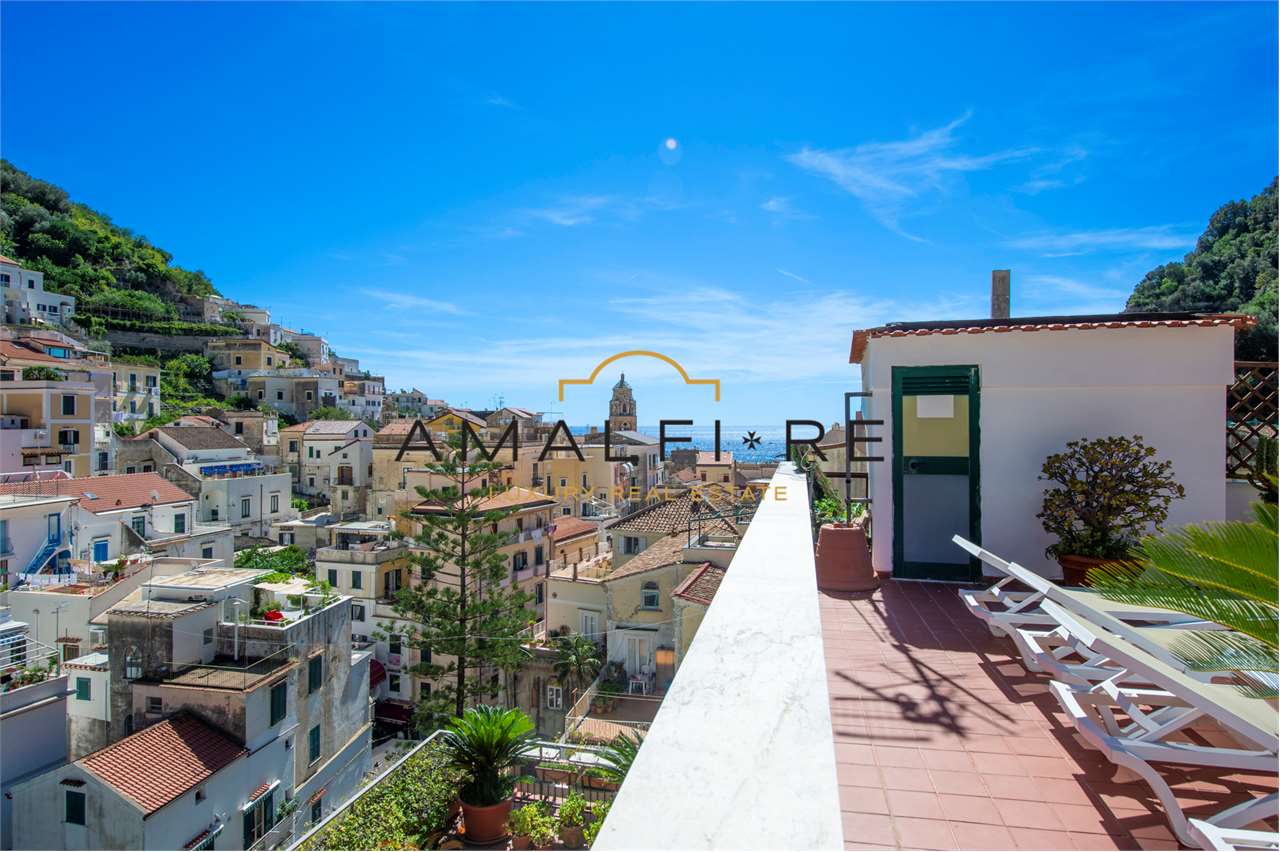 Nel cuore di Amalfi dove si svolge la vita di Amalfi, uno dei paesi piu amati della Costiera, visitato da migliaia di turisti ogni giorno, hai il pregio di vivere un luogo riservato e tranquillo, 100 mq di interni ristrutturati e ben rifiniti, due camere da letto e due bagni di cui uno nella zona cucina, un grande salone dove potersi rilassare mentre ammiri il campanile del Duomo di Amalfi; già struttura extra alberghiera con ottimo profitto. Sesto piano con ascensore. La terrazza e il plus che completa lesclusività dellimmobile- Da qui puoi ammirare tutto il paese, a partire dalla Valle delle Ferriere sino al mare. Se non vuoi perdere questa rara possibilità contatta Amalfi Re