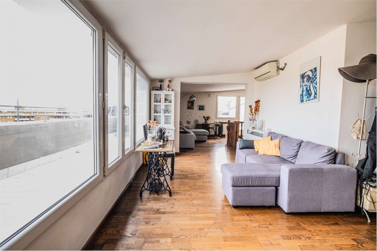 In palazzina nella quale è appena stato terminato l'intervento di riqualificazione energetica, disponiamo di Attico di ampia metratura disposto su due livelli composto da: piano settimo ingresso su soggiorno con balcone,due camere da letto, camera padronale con servizio in camera, bagno, scala interna che sale al piano ottavo composto da ampio soggiorno con affacci su ampie terrazze, zona pranzo, cucina a vista, bagno. completa ala proprietà una autorimessa possibilità di ricavare la quarta camera da letto nella zona giorno del 7°piano