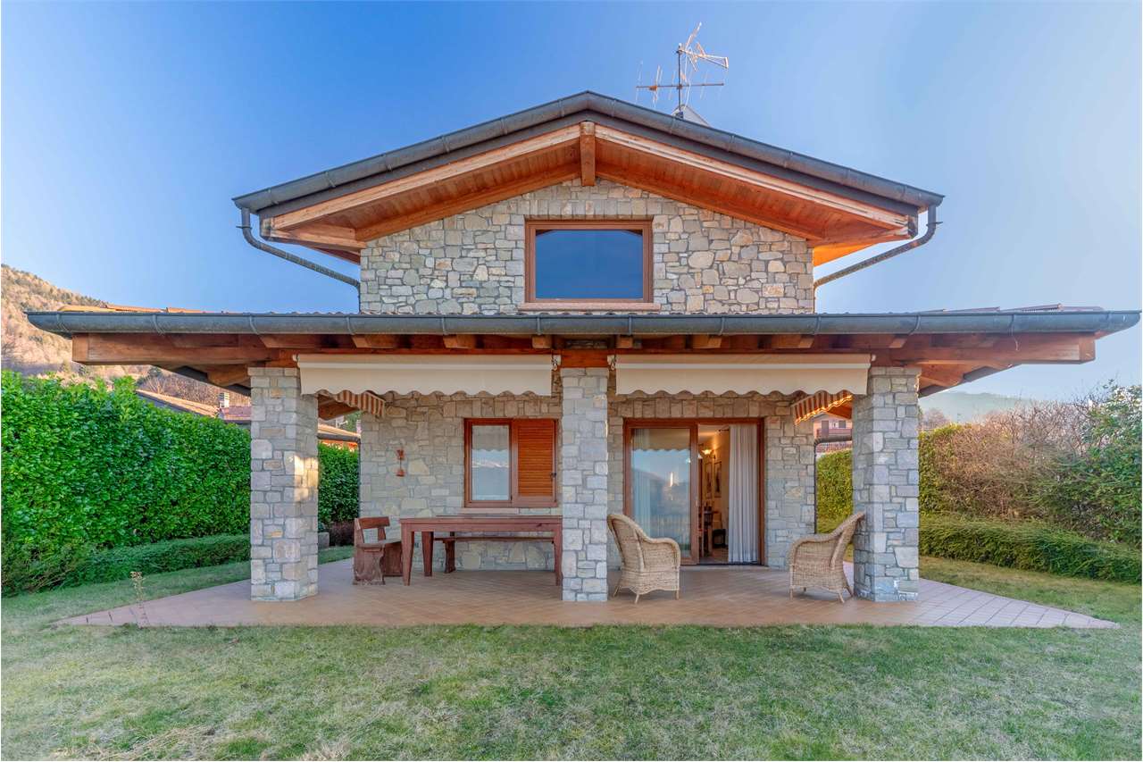 Nella frazione di Grignaghe proponiamo in vendita splendida villa singola in legno e pietra con ampio giardino privato e magnifica veduta sulla valle e sul lago. Le caratteristiche costruttive conferiscono un'atmosfera calda e accogliente all'abitazione, che si integra perfettamente con il paesaggio circostante. Al piano terra troviamo l'ingresso, servizio igienico e lavanderia, il soggiorno, l'angolo cottura e dalla zona living accediamo al suggestivo porticato. Da una scala interna a vista si accede al piano primo dove sono collocate tre camere da letto, di cui due con balcone, e due servizi igienici. Dalla stessa scala si accede al piano interrato con locali accessori, cantina, lavanderia e accogliente taverna. Completa la proprietà un ampio spazio adibito a box auto, molto ben integrato sotto la rampa di accesso alla villa.