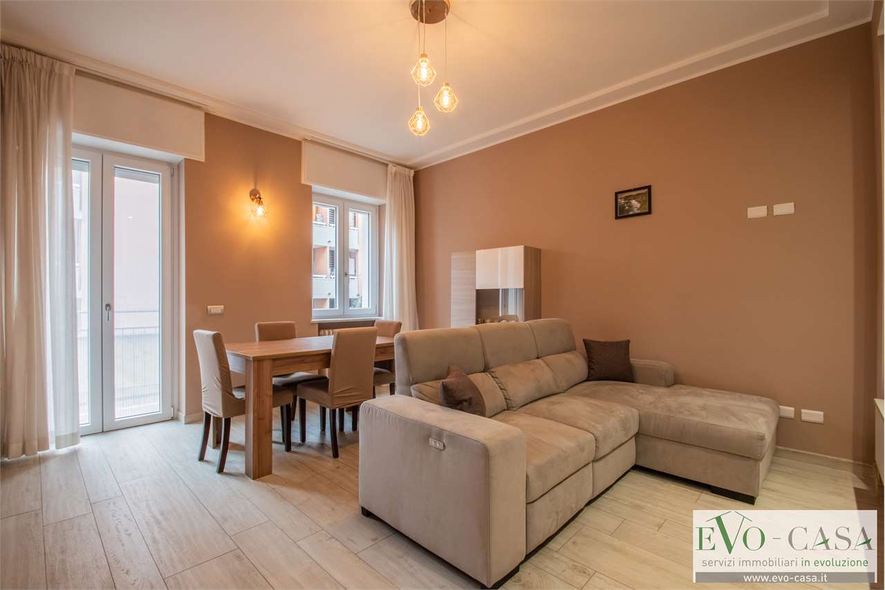 L'edificio sorge in una posizione strategica e ricca di servizi: situato in via Mazzini, si trova a pochi passi dalla Stazione Nord di Busto Arsizio, oltre che in prossimità di scuole e attività commerciali. L'appartamento è in classe energetica A, sinonimo di massimo comfort e risparmio. Il benessere termico è garantito dalla ventilazione meccanica controllata per il ricambio costante dell'aria, mentre ogni ambiente è già predisposto per l'installazione dell'aria condizionata. Gli interni sono stati oggetto di una ristrutturazione integrale: impianti certificati, serramenti nuovi, tapparelle automatizzate e una pavimentazione uniforme in gres porcellanato che dona continuità agli spazi. Il layout è perfettamente bilanciato tra zona giorno e zona notte. L'area living prevede una cucina semi abitabile separata ed un soggiorno, entrambi con accesso al balcone. La zona notte, ben organizzata attorno al corridoio, ospita due camere da letto matrimoniali, un bagno padronale con doccia e un pratico secondo bagno di servizio ad uso lavanderia. La proprietà è completata da un box singolo e da una cantina.