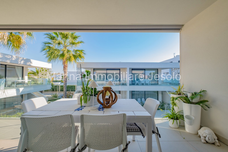 Scoprite un'opportunità unica nel cuore di Jesolo, nella rinomata zona di Piazza Aurora. Vi presentiamo questo splendido appartamento pari al nuovo inserito in un contesto residenziale raccolto e tranquillo, dotato di una piscina riscaldata per i vostri momenti di relax. L'immobile si estende su una superficie complessiva di 70 mq ed è perfettamente posizionato a soli 500 metri dal mare, offrendo la comodità di raggiungere facilmente le splendide spiagge della riviera adriatica. L'appartamento vanta un ingresso indipendente e dispone di un meraviglioso terrazzo abitabile attrezzato ideale per godere di pranzi e cene all'aperto oltre ad uno più piccolo nel retro. All'interno troverete un luminoso soggiorno con cucina a vista che crea uno spazio accogliente e conviviale; due camere da letto offrono comfort e tranquillità. Il bagno finestrato aggiunge praticità alla vita quotidiana mentre ll secondo servizio funge anche da lavanderia e rappresenta ulteriore flessibilità. Completano l'offerta un posto auto coperto utile soprattutto nei periodi più affollati dell'anno. L’appartamento è dotato dei migliori comfort: predisposizione riscaldamento a pavimento (completabile com macchina esterna) li ed aria condizionata con pompa di calore permette freschezza d'estate. Gli arredi sono scelti con gusto e comprendono tendaggi interni ed esterni eleganti che arricchiscono ulteriormente gli ambienti. La posizione strategica consente anche facili accessi ai servizi locali quali ristoranti, negozi e attrazioni turistiche che rendono Jesolo una meta ambita sia per residenti che turisti. Non lasciatevi sfuggire questa fantastica opportunità! Contattateci oggi stesso presso la nostra agenzia per organizzare una visita.