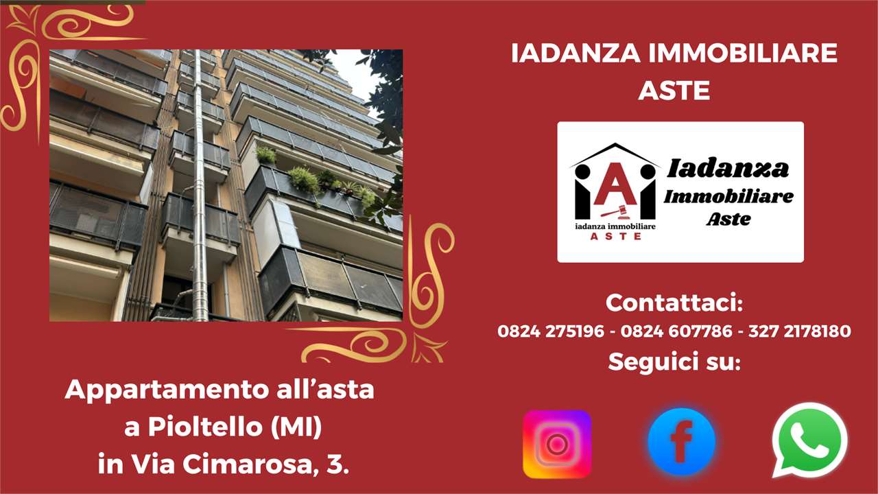 Codice Annuncio: 25TR617 LOC Offerta Minima: 53.250,00 Prezzo Base: 71.000,00 Valore di Perizia: 99.458,05 Data e Ora dellAsta: 26/05/2026 ore 14:00 Termine Presentazione Offerte: 25/05/26 ore 14:00 ******************************************************************************** N.B: -Le foto e la geolocalizzazione presenti negli annunci potrebbero essere solo indicative. La documentazione ufficiale invece è disponibile su richiesta e solo essa farà fede sul piano legale .CONTATTARE LO STUDIO PER CONFERMA E PER MAGGIORI INFORMAZIONI ! -La vendita allAsta dellimmobile è stata disposta dal TRIBUNALE DI COMPETENZA e presuppone che linteressato - qualora intenda partecipare in autonomia - abbia piena conoscenza e consapevolezza dei contenuti di tutta la documentazione riguardante la PROCEDURA se non intende rivolgersi ad un Professionista del Settore ! -Per avere maggiori informazioni o per richiedere un sopralluogo potrai contattarci ai seguenti recapiti : Tel: 0824.607786 - 0824.275196 - 327.2178180 Mail: info@iadanzaimmobiliareaste.com Web: www.iadanzaimmobiliareaste.com ******************************************************************************** Appartamento bilocale all'asta a Pioltello (MI), in Via Cimarosa 3/O, sito all'interno del quartiere Satellite. L'immobile sorge in zona periferica a destinazione residenziale, provvista di servizi di urbanizzazione primaria e secondaria. L'abitazione è ubicata al piano nono di un edificio condominiale di dieci piani fuori terra oltre piano seminterrato, servito da ascensore e portineria, ristrutturato nelle parti comuni nel 2022/2023. L'unità è composta da ingresso su corridoio, soggiorno, cucina abitabile, una camera da letto, un bagno e un balcone con esposizione verso ovest sul cortile interno. Completa la proprietà una cantina al piano seminterrato. ////////////////////////////////SCOPRI LA DIFFERENZA//////////////////////////////////////// Perché sceglierci? PERCHE DI NOI TI PUOI FIDARE! Ti basta compilare la richiesta presente a lato dellannuncio e riceverai tutta lassistenza necessaria per ricercare ed acquistare limmobile che desideri! ////////////////// PROMOZIONI ESCLUSIVE ONLINE///////////////////////// Oltretutto Inviandoci la tua richiesta tramite il FORM DI CONTATTO, presente sulla destra di tutti gli annunci inseriti sul nostro SITO www.iadanzaimmobiliareaste.com otterrai automaticamente: - Una Consulenza gratuita iniziale. - Una polizza Protezione Casa in OMAGGIO! - La restituzione delle spese di istruttoria (solo in caso di aggiudicazione). - Uno Sconto del 3% sul nostro compenso finale. ///////////////// I NOSTRI PUNTI DI FORZA//////////////////////////////////////// Ciò che ci rende unici è il nostro approccio dedicato e professionale, nell'interesse esclusivo del cliente acquirente. Consulenza Gratuita e Professionale: Sempre disponibili per una consulenza senza impegno, con cortesia e professionalità. Indipendenza e Trasparenza: Operiamo su rappresentanza soltanto in favore dellacquirente, senza l'assillo di dover vendere a tutti i costi, garantendo imparzialità e competenze. La nostra reputazione è la tua prima garanzia. Visite Immobiliari Organizzate: Se desideri visionare un immobile, organizziamo la visita in modo completamente gratuito, occupandoci noi di tutte le formalità telematiche necessarie. Istruttoria accurata: A differenza di molti operatori del Settore che si limitano a "smaltire" immobili come "visti e piaciuti", il nostro approfondito esame della pratica (legale, tecnico, condominiale, fiscale, finanziario) ti assicurerà la tranquillità che cercavi. Noi redigiamo una "Relazione di Fattibilità Tecnico/Legale" prima di ogni partecipazione all'asta che sintetizza ogni aspetto della Procedura. Siamo gli unici insomma a "metterci la faccia". Assistenza dedicata passo dopo passo: Il nostro consulente esperto ti assiste in ogni fase, dalla ricerca all'aggiudicazione e anche oltre. Ricerca Personalizzata: Se non hai tempo per la ricerca, inviaci la tua richiesta tramite il SITO e lo faremo noi per te. Chiarezza Contrattuale: Siamo uno Studio di Consulenza Tecnico/Legale, non un'agenzia immobiliare tradizionale. Il rapporto è regolato da un incarico chiaro, sottoscritto dalle parti, senza sorprese per il Cliente. ////////////////// SERVIZI DI BASE INCLUSI/////////////////////////////////////// Offriamo un pacchetto completo per assisterti e consigliarti nella massima sicurezza: Consulenza gratuita (telefonica o su appuntamento). Analisi documentale approfondita in collaborazione con esperti legali, tecnici, notai e commercialisti. Assistenza completa per ogni adempimento: visite, pratiche, firme digitali, domande di partecipazione, saldi, tasse, consegna immobile, sanatorie, ecc. Visita dellimmobile organizzata gratuitamente dal nostro Studio in via telematica. Consulenza creditizia su misura con un esperto di Banca. Supporto Stragiudiziale per analizzare e gestire situazioni debitorie complesse. ------------------------------------------------------------------------------------------------------------------------ CONTATTACI SUBITO Per avere maggiori informazioni o per richiedere un sopralluogo potrai contattarci ai seguenti recapiti : Tel: 0824.607786 - 0824.275196 - 327.2178180 Mail: info@iadanzaimmobiliareaste.com Web: www.iadanzaimmobiliareaste.com