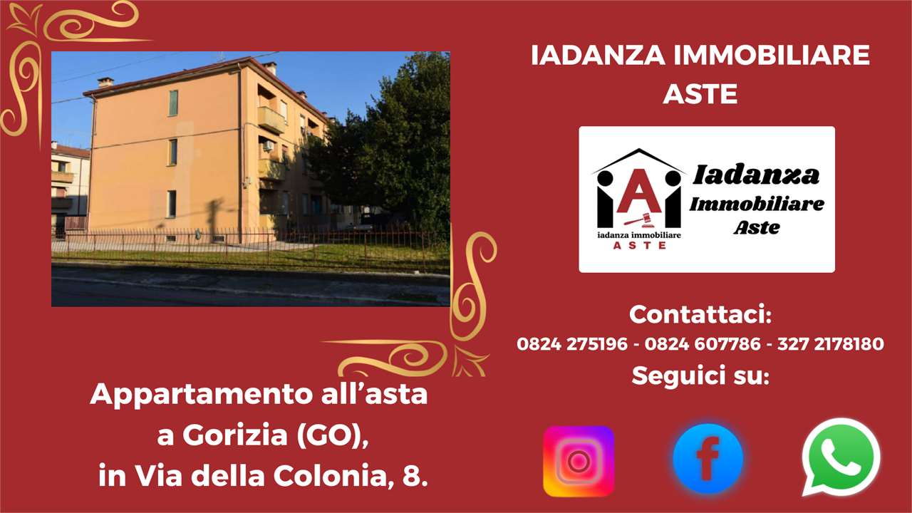 Codice Annuncio: 24AQR+91 Offerta Minima: 34.875,00 Prezzo Base: 46.500,00 Valore di Perizia: 51.792,00 Data e Ora dellAsta: 21/04/26 ore 11:00 Data e Ora del Termine di Presentazione delle Offerte: 17/04/26 ore 12:00 ******************************************************************************** N.B: -Le foto e la geolocalizzazione presenti negli annunci potrebbero essere solo indicative. La documentazione ufficiale invece è disponibile su richiesta e solo essa farà fede sul piano legale. CONTATTARE LO STUDIO PER CONFERMA E PER MAGGIORI INFORMAZIONI! -La vendita allAsta dellimmobile è stata disposta dal TRIBUNALE DI COMPETENZA e presuppone che linteressato - qualora intenda partecipare in autonomia - abbia piena conoscenza e consapevolezza dei contenuti di tutta la documentazione riguardante la PROCEDURA se non intende rivolgersi ad un Professionista del Settore! ******************************************************************************** Appartamento all'asta a Gorizia (GO) in Via della Colonia, 8. L'unità immobiliare sorge in zona semicentrale, risultante munita di servizi di urbanizzazione primaria e secondaria. L'immobile occupa il secondo piano di una palazzina di più ampie dimensioni che si sviluppa su tre piani fuori terra e uno scantinato al piano seminterrato. Al suo interno, l'abitazione risulta così suddivisa: ingresso, soggiorno, cucina, disimpegno, due camere da letto, ripostiglio, veranda e terrazzo. ////////////////////////////////SCOPRI LA DIFFERENZA//////////////////////////////////////// Perché sceglierci? PERCHE DI NOI TI PUOI FIDARE! Ti basta compilare la richiesta presente a lato dellannuncio e riceverai tutta lassistenza necessaria per ricercare ed acquistare limmobile che desideri! ////////////////// PROMOZIONI ESCLUSIVE ONLINE///////////////////////// Oltretutto Inviandoci la tua richiesta tramite il FORM DI CONTATTO, presente sulla destra di tutti gli annunci inseriti sul nostro SITO www.iadanzaimmobiliareaste.com otterrai automaticamente: - Una Consulenza gratuita iniziale. - Una polizza Protezione Casa in OMAGGIO! - La restituzione delle spese di istruttoria (solo in caso di aggiudicazione). - Uno Sconto del 3% sul nostro compenso finale. ///////////////// I NOSTRI PUNTI DI FORZA//////////////////////////////////////// Ciò che ci rende unici è il nostro approccio dedicato e professionale, nell'interesse esclusivo del cliente acquirente. Consulenza Gratuita e Professionale: Sempre disponibili per una consulenza senza impegno, con cortesia e professionalità. Indipendenza e Trasparenza: Operiamo su rappresentanza soltanto in favore dellacquirente, senza l'assillo di dover vendere a tutti i costi, garantendo imparzialità e competenze. La nostra reputazione è la tua prima garanzia. Visite Immobiliari Organizzate: Se desideri visionare un immobile, organizziamo la visita in modo completamente gratuito, occupandoci noi di tutte le formalità telematiche necessarie. Istruttoria accurata: A differenza di molti operatori del Settore che si limitano a "smaltire" immobili come "visti e piaciuti", il nostro approfondito esame della pratica (legale, tecnico, condominiale, fiscale, finanziario) ti assicurerà la tranquillità che cercavi. Noi redigiamo una "Relazione di Fattibilità Tecnico/Legale" prima di ogni partecipazione all'asta che sintetizza ogni aspetto della Procedura. Siamo gli unici insomma a "metterci la faccia". Assistenza dedicata passo dopo passo: Il nostro consulente esperto ti assiste in ogni fase, dalla ricerca all'aggiudicazione e anche oltre. Ricerca Personalizzata: Se non hai tempo per la ricerca, inviaci la tua richiesta tramite il SITO e lo faremo noi per te. Chiarezza Contrattuale: Siamo uno Studio di Consulenza Tecnico/Legale, non un'agenzia immobiliare tradizionale. Il rapporto è regolato da un incarico chiaro, sottoscritto dalle parti, senza sorprese per il Cliente. ////////////////// SERVIZI DI BASE INCLUSI/////////////////////////////////////// Offriamo un pacchetto completo per assisterti e consigliarti nella massima sicurezza: Consulenza gratuita (telefonica o su appuntamento). Analisi documentale approfondita in collaborazione con esperti legali, tecnici, notai e commercialisti. Assistenza completa per ogni adempimento: visite, pratiche, firme digitali, domande di partecipazione, saldi, tasse, consegna immobile, sanatorie, ecc. Visita dellimmobile organizzata gratuitamente dal nostro Studio in via telematica. Consulenza creditizia su misura con un esperto di Banca. Supporto Stragiudiziale per analizzare e gestire situazioni debitorie complesse. ------------------------------------------------------------------------------------------------------------------------ //////////////////////////////////CONTATTACI SUBITO/////////////////////////////////////////// Per saperne di più o inviare una richiesta specifica: Tel: 0824.607786 - 0824.275196 - 327.2178180 Mail: info@iadanzaimmobiliareaste.com Web: www.iadanzaimmobiliareaste.com