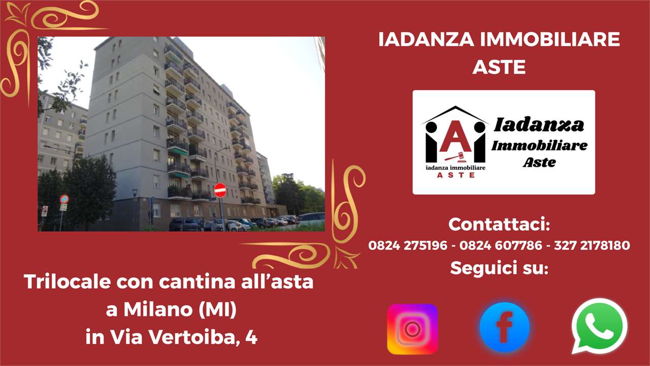 Codice Annuncio: 25tr7972 Offerta Minima: 318.000,00 Prezzo Base: 318.000,00 Valore di Perizia: 397.000,00 Data e Ora dellAsta: 19/05/2026 ore 15:30 Termine Presentazione Offerte: 18/05/2026 ore 13:00 ******************************************************************************** N.B: -Le foto e la geolocalizzazione presenti negli annunci potrebbero essere solo indicative. La documentazione ufficiale invece è disponibile su richiesta e solo essa farà fede sul piano legale .CONTATTARE LO STUDIO PER CONFERMA E PER MAGGIORI INFORMAZIONI ! -La vendita allAsta dellimmobile è stata disposta dal TRIBUNALE DI COMPETENZA e presuppone che linteressato - qualora intenda partecipare in autonomia - abbia piena conoscenza e consapevolezza dei contenuti di tutta la documentazione riguardante la PROCEDURA se non intende rivolgersi ad un Professionista del Settore ! -Per avere maggiori informazioni o per richiedere un sopralluogo potrai contattarci ai seguenti recapiti : Tel: 0824.607786 - 0824.275196 - 327.2178180 Mail: info@iadanzaimmobiliareaste.com Web: www.iadanzaimmobiliareaste.com ******************************************************************************** Appartamento all'asta in Milano, Via Vertoiba n. 4, scala A. Il trilocale è posto al sesto piano di un fabbricato residenziale di nove piani fuori terra oltre piano seminterrato, edificato negli anni '50 e dotato di ascensore e servizio di portineria. L'immobile sorge nella zona est della citta, qualificata come periferica ma inserita in un contesto urbano pienamente servito, compreso tra Viale Umbria, Via Monte Ortigara, Viale Molise e Piazzale Martini, in prossimita del Parco 8 Marzo, del passante ferroviario di Porta Vittoria e della fermata Dateo della linea M4. La zona risulta munita di servizi di urbanizzazione primaria e secondaria, attività commerciali, trasporti pubblici e collegamenti stradali rapidi. L'abitazione ha una superficie commerciale dichiarata di 77 mq ed è composta da soggiorno con balcone, cucina separata, due camere da letto, disimpegno, servizio igienico e ripostigli. Completa la proprietà un vano cantina al piano seminterrato. ////////////////////////////////SCOPRI LA DIFFERENZA//////////////////////////////////////// Perché sceglierci? PERCHE DI NOI TI PUOI FIDARE! Ti basta compilare la richiesta presente a lato dellannuncio e riceverai tutta lassistenza necessaria per ricercare ed acquistare limmobile che desideri! ////////////////// PROMOZIONI ESCLUSIVE ONLINE///////////////////////// Oltretutto Inviandoci la tua richiesta tramite il FORM DI CONTATTO, presente sulla destra di tutti gli annunci inseriti sul nostro SITO www.iadanzaimmobiliareaste.com otterrai automaticamente: - Una Consulenza gratuita iniziale. - Una polizza Protezione Casa in OMAGGIO! - La restituzione delle spese di istruttoria (solo in caso di aggiudicazione). - Uno Sconto del 3% sul nostro compenso finale. ///////////////// I NOSTRI PUNTI DI FORZA//////////////////////////////////////// Ciò che ci rende unici è il nostro approccio dedicato e professionale, nell'interesse esclusivo del cliente acquirente. Consulenza Gratuita e Professionale: Sempre disponibili per una consulenza senza impegno, con cortesia e professionalità. Indipendenza e Trasparenza: Operiamo su rappresentanza soltanto in favore dellacquirente, senza l'assillo di dover vendere a tutti i costi, garantendo imparzialità e competenze. La nostra reputazione è la tua prima garanzia. Visite Immobiliari Organizzate: Se desideri visionare un immobile, organizziamo la visita in modo completamente gratuito, occupandoci noi di tutte le formalità telematiche necessarie. Istruttoria accurata: A differenza di molti operatori del Settore che si limitano a "smaltire" immobili come "visti e piaciuti", il nostro approfondito esame della pratica (legale, tecnico, condominiale, fiscale, finanziario) ti assicurerà la tranquillità che cercavi. Noi redigiamo una "Relazione di Fattibilità Tecnico/Legale" prima di ogni partecipazione all'asta che sintetizza ogni aspetto della Procedura. Siamo gli unici insomma a "metterci la faccia". Assistenza dedicata passo dopo passo: Il nostro consulente esperto ti assiste in ogni fase, dalla ricerca all'aggiudicazione e anche oltre. Ricerca Personalizzata: Se non hai tempo per la ricerca, inviaci la tua richiesta tramite il SITO e lo faremo noi per te. Chiarezza Contrattuale: Siamo uno Studio di Consulenza Tecnico/Legale, non un'agenzia immobiliare tradizionale. Il rapporto è regolato da un incarico chiaro, sottoscritto dalle parti, senza sorprese per il Cliente. ////////////////// SERVIZI DI BASE INCLUSI/////////////////////////////////////// Offriamo un pacchetto completo per assisterti e consigliarti nella massima sicurezza: Consulenza gratuita (telefonica o su appuntamento). Analisi documentale approfondita in collaborazione con esperti legali, tecnici, notai e commercialisti. Assistenza completa per ogni adempimento: visite, pratiche, firme digitali, domande di partecipazione, saldi, tasse, consegna immobile, sanatorie, ecc. Visita dellimmobile organizzata gratuitamente dal nostro Studio in via telematica. Consulenza creditizia su misura con un esperto di Banca. Supporto Stragiudiziale per analizzare e gestire situazioni debitorie complesse. ------------------------------------------------------------------------------------------------------------------------ CONTATTACI SUBITO Per avere maggiori informazioni o per richiedere un sopralluogo potrai contattarci ai seguenti recapiti : Tel: 0824.607786 - 0824.275196 - 327.2178180 Mail: info@iadanzaimmobiliareaste.com Web: www.iadanzaimmobiliareaste.com