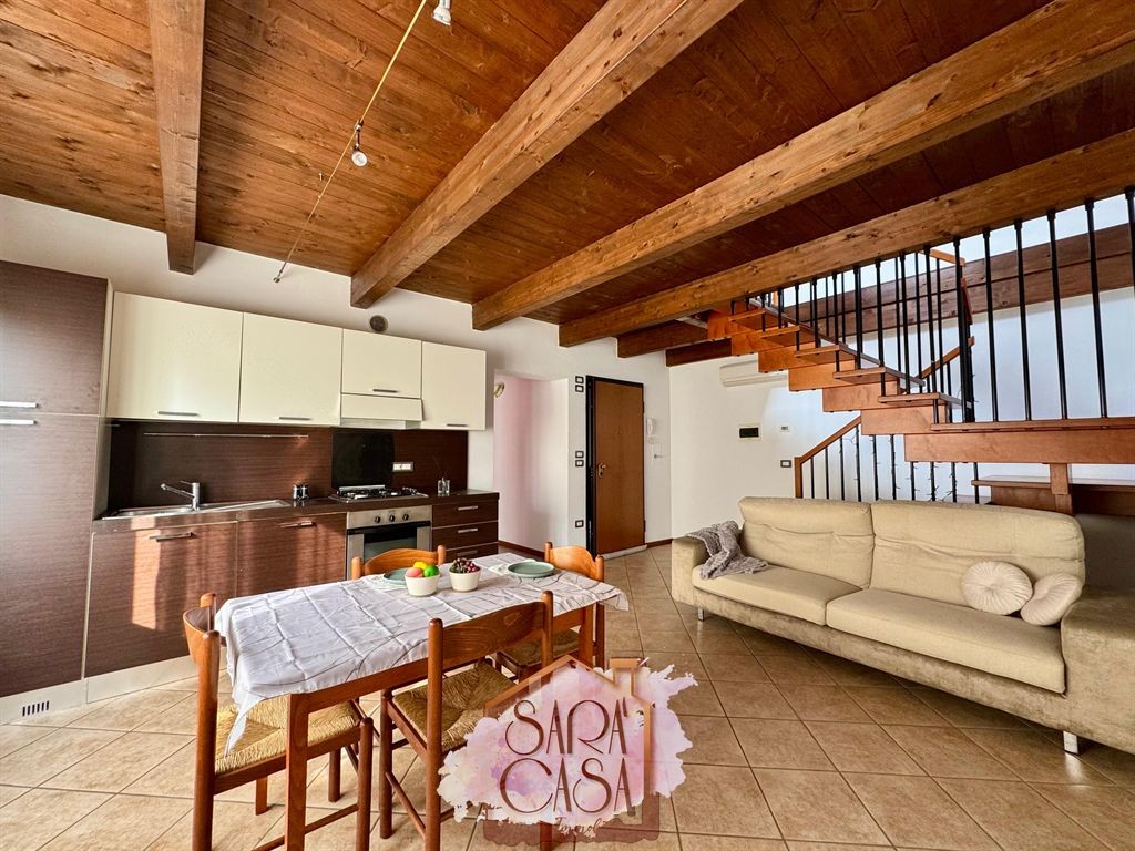 BAGNACAVALLO / CENTRO STORICO In zona centralissima, si propone elegante appartamento al secondo ed ultimo piano di una palazzina recente, disposto su due livelli. L'immobile, in buono stato di conservazione e completamente arredato, si compone di: ingresso su ampio soggiorno con angolo cottura, disimpegno, camera da letto matrimoniale e spazioso bagno finestrato con box doccia. Scala di collegamento in legno che conduce al piano superiore mansardato, costituito da: camera da letto singola, due luminosi vani serviti di lucernai e secondo bagno finestrato con box doccia. Concludono la proprietà due cantine al piano terra. Cortile condominiale con deposito bici comune. Impianti autonomi e aria condizionata. Libero subito. C.E. in fase di redazione Eur. 175.000,00 OFF. 652