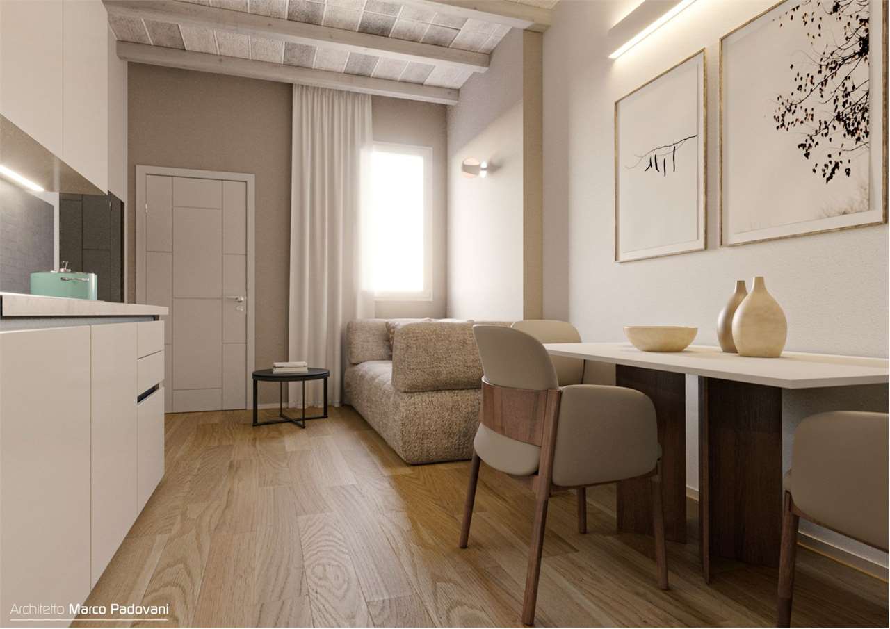 Modena(Centro Storico) Vendesi appartamento in fase di completa ristrutturazione posto al 3° piano s/asc cosi' composto: ingresso in sala con angolo cottura, disimpegno, camera matrimoniale e bagno; una scala interna collega l'appartamento alla seconda camera mansardata con bagno. Completa la proprieta' un ampia cantina al piano terra. Euro 235.000,00