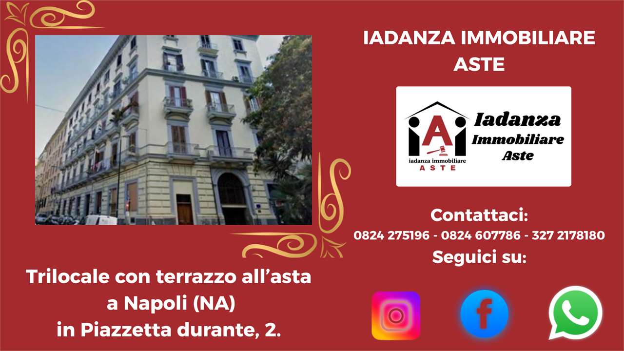 Codice Annuncio: ATR 21ATR725 Offerta Minima: 329.361,00 Prezzo Base: 439.148,00 Valore di Perizia: 495.720,00 Data e Ora dellAsta: 19/05/2026 10:00 Termine Presentazione Offerte: 17/05/2026 30:00 ******************************************************************************** N.B: -Le foto e la geolocalizzazione presenti negli annunci potrebbero essere solo indicative. La documentazione ufficiale invece è disponibile su richiesta e solo essa farà fede sul piano legale .CONTATTARE LO STUDIO PER CONFERMA E PER MAGGIORI INFORMAZIONI ! -La vendita allAsta dellimmobile è stata disposta dal TRIBUNALE DI COMPETENZA e presuppone che linteressato - qualora intenda partecipare in autonomia - abbia piena conoscenza e consapevolezza dei contenuti di tutta la documentazione riguardante la PROCEDURA se non intende rivolgersi ad un Professionista del Settore ! -Per avere maggiori informazioni o per richiedere un sopralluogo potrai contattarci ai seguenti recapiti : Tel: 0824.607786 - 0824.275196 - 327.2178180 Mail: info@iadanzaimmobiliareaste.com Web: www.iadanzaimmobiliareaste.com ******************************************************************************** Trilocale con terrazzo all'asta a Napoli (NA) in Piazzetta Durante, 2. L'appartamento è situato nel cuore del Vomero, a pochi passi da Piazza Vanvitelli, Via Scarlatti e dalla Villa Floridiana, in contesto signorile e servitissimo. Limmobile è posto al quarto piano con ascensore ed è composto da: ingresso, ampio salone con angolo cottura, due camere da letto, doppi servizi, soppalco (ad uso deposito). Completa la proprietà uno splendido terrazzo di copertura. ------------------------------------------------------------------------------------------------------------------------ ////////////////////////////////SCOPRI LA DIFFERENZA//////////////////////////////////////// Perché sceglierci? PERCHE DI NOI TI PUOI FIDARE! Ti basta compilare la richiesta presente a lato dellannuncio e riceverai tutta lassistenza necessaria per ricercare ed acquistare limmobile che desideri! ////////////////// PROMOZIONI ESCLUSIVE ONLINE///////////////////////// Oltretutto Inviandoci la tua richiesta tramite il FORM DI CONTATTO, presente sulla destra di tutti gli annunci inseriti sul nostro SITO www.iadanzaimmobiliareaste.com otterrai automaticamente: - Una Consulenza gratuita iniziale. - Una polizza Protezione Casa in OMAGGIO! - La restituzione delle spese di istruttoria (solo in caso di aggiudicazione). - Uno Sconto del 3% sul nostro compenso finale. ///////////////// I NOSTRI PUNTI DI FORZA//////////////////////////////////////// Ciò che ci rende unici è il nostro approccio dedicato e professionale, nell'interesse esclusivo del cliente acquirente. Consulenza Gratuita e Professionale: Sempre disponibili per una consulenza senza impegno, con cortesia e professionalità. Indipendenza e Trasparenza: Operiamo su rappresentanza soltanto in favore dellacquirente, senza l'assillo di dover vendere a tutti i costi, garantendo imparzialità e competenze. La nostra reputazione è la tua prima garanzia. Visite Immobiliari Organizzate: Se desideri visionare un immobile, organizziamo la visita in modo completamente gratuito, occupandoci noi di tutte le formalità telematiche necessarie. Istruttoria accurata: A differenza di molti operatori del Settore che si limitano a "smaltire" immobili come "visti e piaciuti", il nostro approfondito esame della pratica (legale, tecnico, condominiale, fiscale, finanziario) ti assicurerà la tranquillità che cercavi. Noi redigiamo una "Relazione di Fattibilità Tecnico/Legale" prima di ogni partecipazione all'asta che sintetizza ogni aspetto della Procedura. Siamo gli unici insomma a "metterci la faccia". Assistenza dedicata passo dopo passo: Il nostro consulente esperto ti assiste in ogni fase, dalla ricerca all'aggiudicazione e anche oltre. Ricerca Personalizzata: Se non hai tempo per la ricerca, inviaci la tua richiesta tramite il SITO e lo faremo noi per te. Chiarezza Contrattuale: Siamo uno Studio di Consulenza Tecnico/Legale, non un'agenzia immobiliare tradizionale. Il rapporto è regolato da un incarico chiaro, sottoscritto dalle parti, senza sorprese per il Cliente. ////////////////// SERVIZI DI BASE INCLUSI/////////////////////////////////////// Offriamo un pacchetto completo per assisterti e consigliarti nella massima sicurezza: Consulenza gratuita (telefonica o su appuntamento). Analisi documentale approfondita in collaborazione con esperti legali, tecnici, notai e commercialisti. Assistenza completa per ogni adempimento: visite, pratiche, firme digitali, domande di partecipazione, saldi, tasse, consegna immobile, sanatorie, ecc. Visita dellimmobile organizzata gratuitamente dal nostro Studio in via telematica. Consulenza creditizia su misura con un esperto di Banca. Supporto Stragiudiziale per analizzare e gestire situazioni debitorie complesse. ------------------------------------------------------------------------------------------------------------------------ CONTATTACI SUBITO Per avere maggiori informazioni o per richiedere un sopralluogo potrai contattarci ai seguenti recapiti : Tel: 0824.607786 - 0824.275196 - 327.2178180 Mail: info@iadanzaimmobiliareaste.com Web: www.iadanzaimmobiliareaste.com
