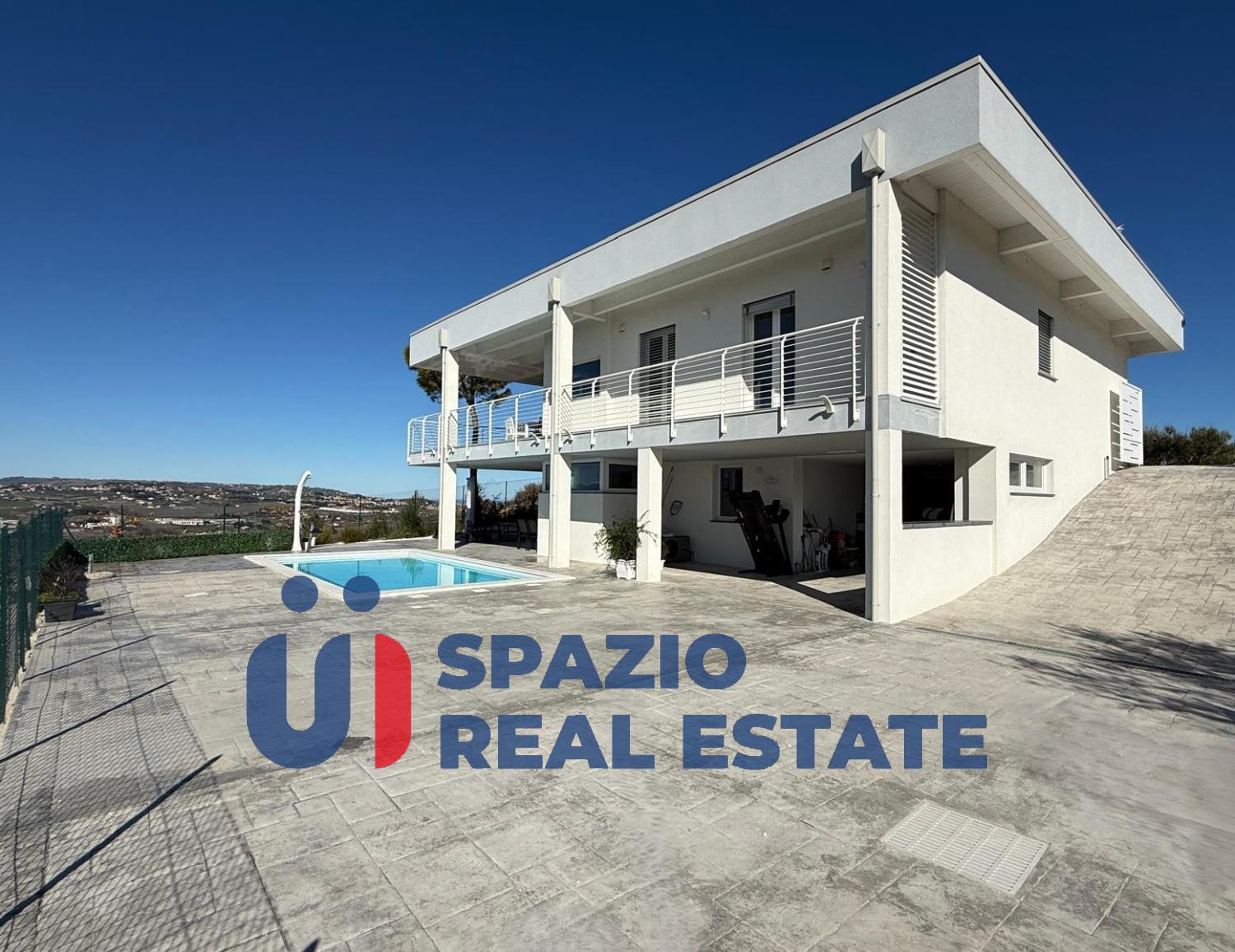 Nello splendido panorama, in uno scenario suggestivo dell'Adriatico, la "Genera R. E. & Chiodelli Immobiliare" propone in vendita questa proprietà immobiliare composta da una villa con tratti moderni, circondata da un giardino di oltre 1000 mq. Le linee semplici ma eleganti del fabbricato e la riservatezza del luogo circostante sono il punto di forza di questa dimora. L'edificio presenta una pianta regolare rettangolare e si sviluppa su tre livelli, oltre un piano interrato a cantina: Il piano terra con ingresso indipendente è composto da un ampio salone/taverna dal quale si accede nell'ampio portico, dalla vista panoramica, con accesso alla piscina di proprietà, completano il piano un bagno e una cucina. Dal salone si accede al piano superiore, quest'ultimo composto da un ampio ingresso che filtra armoniosamente gli ambienti del piano, quali salone doppio e i due servizi, due ampie camere. Il salone è dotato di tre ampie finestre di cui una è porta-finestra e permette l'accesso al grande balcone. Attraverso la scala interna si raggiunge anche il piano superiore così composto: disimpegno, salone, due camere, servizio. Estremamente accogliente e spaziosa la Villa è in grado di adeguarsi ad ogni esigenza. Il contornante giardino recintato, impreziosisce la dimora. Una proprietà davvero unica nel suo genere, facilmente raggiungibile dal centro cittadino si presta ad essere dimora per una famiglia numerosa, diversamente per due nuclei autonomi. La villa rappresenta la soluzione ideale per chi cerca la quiete, aree ideali per lo svago e il relax in riservatezza.
