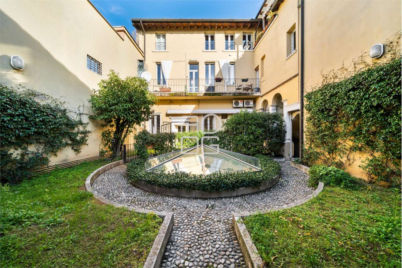 Nel cuore del centro storico, questo appartamento unisce il fascino dellarchitettura depoca al comfort di una ristrutturazione attenta e contemporanea, offrendo privacy e tranquillità in una posizione centrale. Laccesso avviene attraverso il cortile del palazzo, da cui si raggiunge un dehor privato, uno spazio esterno riservato e piacevole, ideale per pranzi e momenti di relax allaperto durante la bella stagione. Lingresso si apre su una zona giorno ampia e luminosa, valorizzata da grandi finestre, travi antiche a vista e da un elegante camino in marmo che racconta la storia della casa. Un pratico soppalco, collegato da una scala dal design moderno, arricchisce ulteriormente lambiente. La cucina, separata da una parete scorrevole, è funzionale e ben organizzata, con una zona pranzo illuminata da luce naturale e da un sistema di illuminazione integrato nelle controsoffittature, presenti in tutta labitazione. La zona notte è composta da una camera padronale con bagno en suite e da tre ulteriori camere, tutte rifinite con parquet e servite da tre bagni moderni. Gli ambienti sono luminosi e ben distribuiti, ideali anche per una famiglia numerosa. Da questa area si accede a un secondo spazio esterno, pavimentato in teak, perfetto per creare un angolo riservato dove rilassarsi. Lappartamento dispone inoltre di posto auto coperto, zona lavanderia e ampio guardaroba. Una soluzione di charme nel centro città, pronta da abitare, che coniuga carattere storico e funzionalità contemporanea.