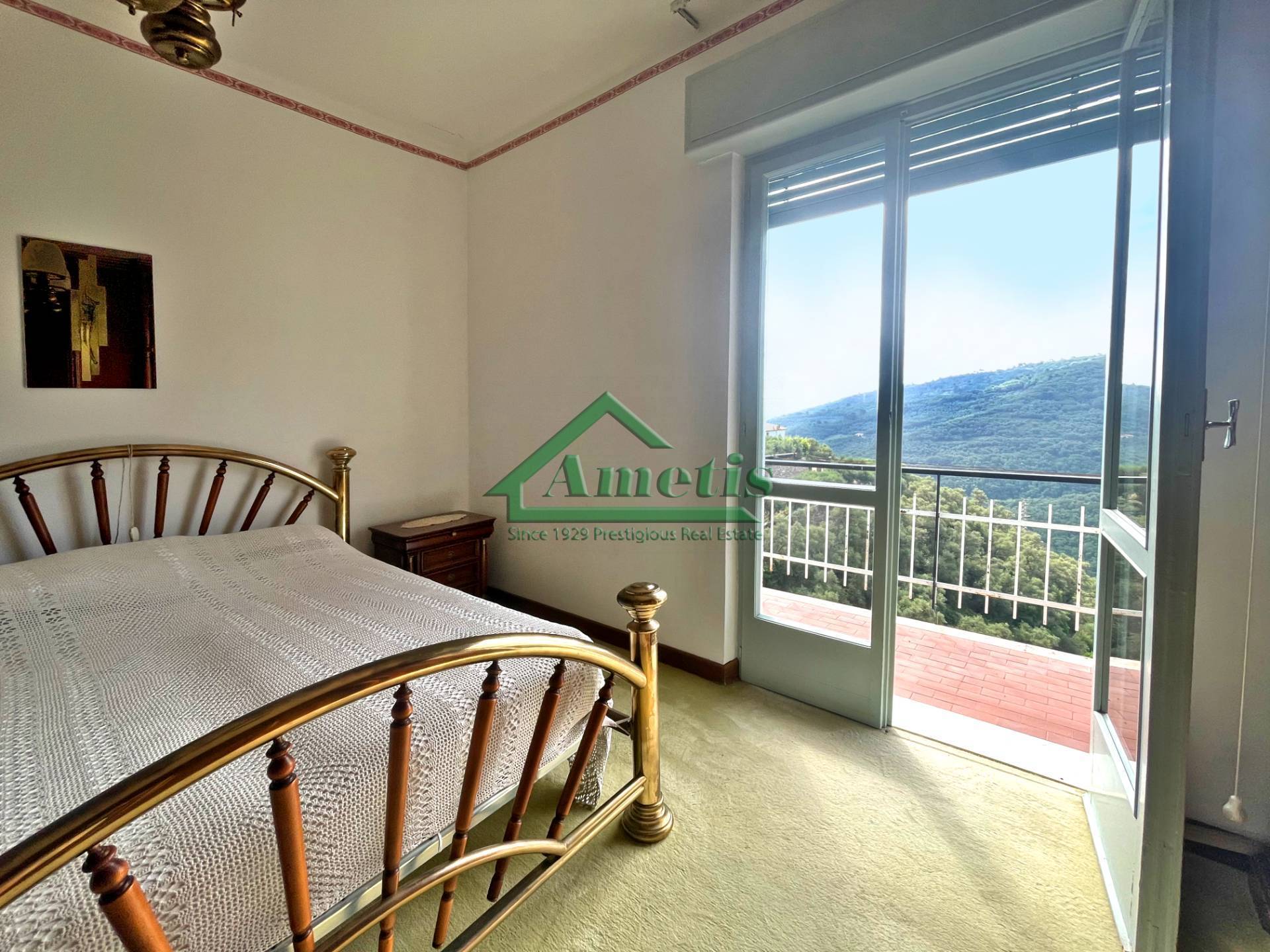 PIETRABRUNA - All' inizio del caratteristico borgo ligure l'Agenzia Ametis propone in vendita un appartamento di 82mq, posto al terzo e ultimo piano (senza ascensore) di una palazzina che ha comodo accesso dalla strada provinciale e parcheggio disponibile. L' appartamento, in buone condizioni, da sistemare, è composto da corridoio d' ingresso, cucina abitabile con balcone vista sul paese di Pietrabruna, sala con balcone vista aperta sulla vallata sino al mare, bagno con finestra, due camere matrimoniali, ripostiglio oltre cantina posta al piano terra. Sono presenti alcuni posti auto condominiali a lato del porticato di ingresso. L’esposizione dell'immobile è Sud-Est Nord-Ovest con vista sulla collina circostante sino al mare. Riscaldamento autonomo a gas con caldaia sul balcone. Completa la proprietà un box auto di 19mq.<br><br>Il paese di Pietrabruna è un vivace borgo che, tra carrugi e piazze, offre a turisti e residenti un' atmosfera rilassata, ma con qualche marcia in più: sono disponibili a pochi passi da casa alcuni comodi servizi come l'ufficio postale, una bottega alimentare con specialità locali, bar, ristorante, trattoria.<br>Il Comune di Pietrabruna, oltre a fare parte dell' Associazione Nazionale Città dell' Olio, è noto sia per la "stroscia" (dolce tipico di pasta frolla di farina frumento con olio di oliva) che per la lavanda che viene ancora oggi distillata nella zona e le cui proprietà vengono celebrate nella festa della lavanda con la tradizionale accensione dell' alambicco, animazione e cena all'aperto con specialità locali, musica e danze; durante l'anno vengono organizzate varie iniziative, mostre e spettacoli, attività culturali e sportive, anche in collaborazione con gli altri comuni della Valle del San Lorenzo.<br>Per gli amanti degli sport all'aria aperta sono disponibili numerosi percorsi mountain bike e trekking da apprezzare nella natura incontaminata tra orchidee e farfalle, baciata dal un meraviglioso clima temperato tutto l'anno.<br><br>Chiamaci per fissare un appuntamento e cominciare a goderti il tuo angolo di Liguria!<br>Agenzia Ametis dal 1929 Tel. +39 0183 710294 - info@ametis.it - Cell. e WhatsApp +39 370 3506681.<br>Il presente annuncio ha scopo informativo indicativo e non costituisce elemento contrattuale.