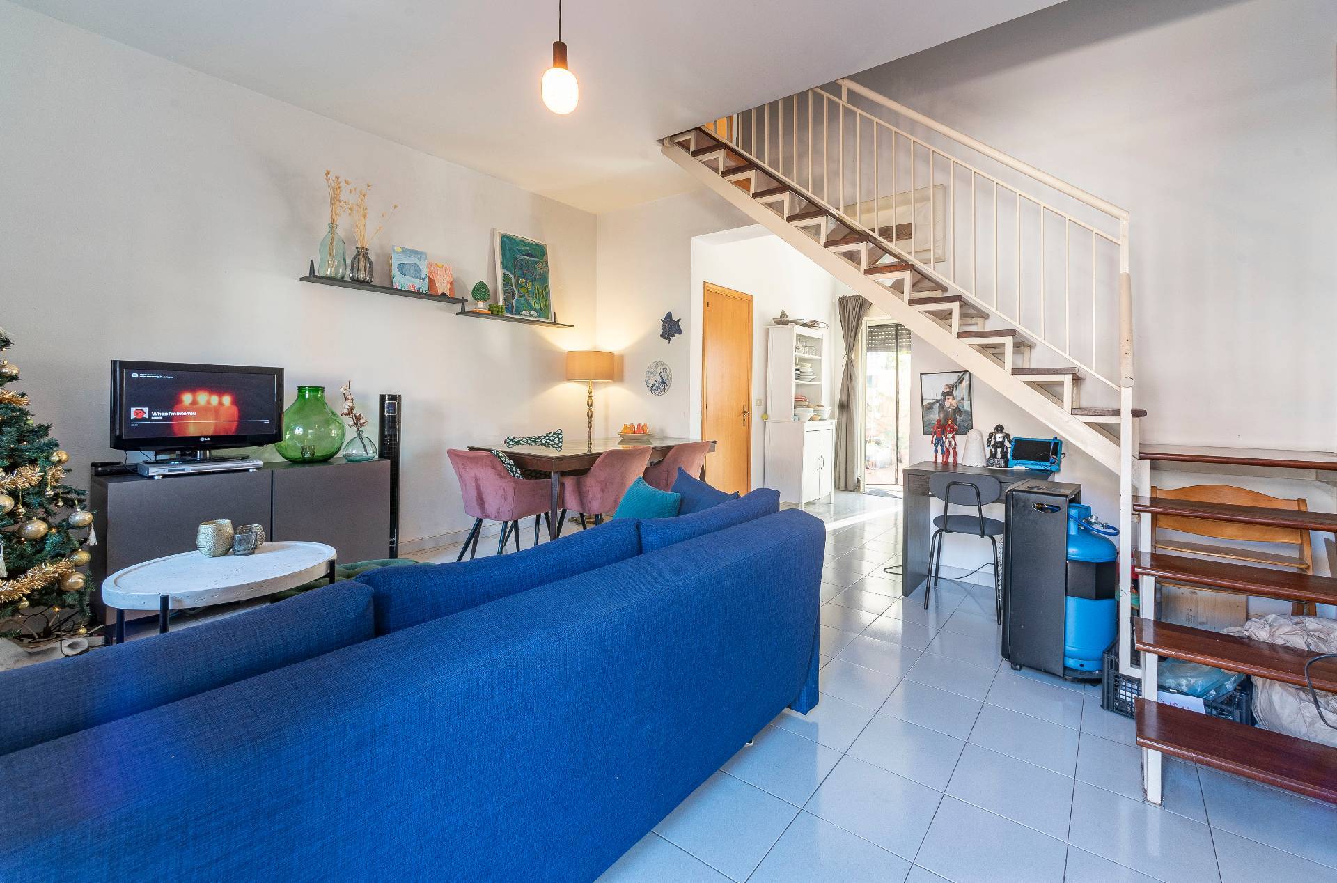 Grignano, bella villa a schiera in vendita con giardinetto frontale e tergale composta da ingresso su ampio salone luminoso con predisposizione camino, cucina abitabile, bagno, ripostiglio, al primo piano camera singola, bagno con vasca e finestra, camera matrimoniale con due grandi finestre con accesso al terrazzo e bagno in camera con doccia e finestra velux, al piano mansarda altre due camere singole, ripostiglio e accesso alla terrazza a tasca. Nel piano seminterrato con accesso alla rampa carrabile e dalle scale esterne poste nel giardino privato si accede alla taverna attrezzata con angolo cottura, ripostiglio e all'ampio garage, dal quale si può accedere alla cantina. Ottime condizioni generali, con piccole spese di gestioni in quanto la casa è riscaldata da caldaia a condensazione e pannelli fotovoltaici e aria condizionata. Ulteriori informazioni in agenzia.