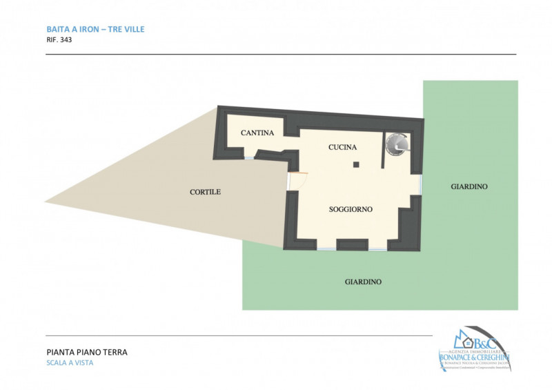 Stupenda baita rustica situata a 1.000 metri sul livello del mare, affacciata sul versante sud del monte Irone e alle pendici delle Dolomiti di Brenta, a metà strada fra il Lago di Garda e Madonna di Campiglio. L'immobile si estende su una superficie di 107 mq catastali ed è valorizzato dalla posizione rialzata che regala una vista mozzafiato sulla vallata sottostante, oltre ad un'ottima esposizione solare. La baita è disposta su due livelli; al piano terra troviamo la spaziosa area living, cucina attrezzata e cantinetta; al primo piano sono presenti tre accoglienti stanze (due camere da letto oltre ad un salottino eventualmente adattabile a terza camera) e un bagno. La proprietà dispone inoltre di un giardino esterno pianeggiante e ben curato, perfetto per godersi il panorama circostante, area barbecue e locali ad uso deposito/ripostiglio. Completano la proprietà ulteriori 400 metri di terreno, in pendenza e in parte terrazzati, utilizzabili anche come orto. Tra le dotazioni principali figurano l'acqua disponibile all'interno della baita, nonché l'approvvigionamento energetico garantito da impianto fotovoltaico (ca. 2 KWh). Nonostante l'esclusività dell'ambiente montano, la posizione rimane accessibile tramite strada sterrata raggiungibile con mezzi propri.