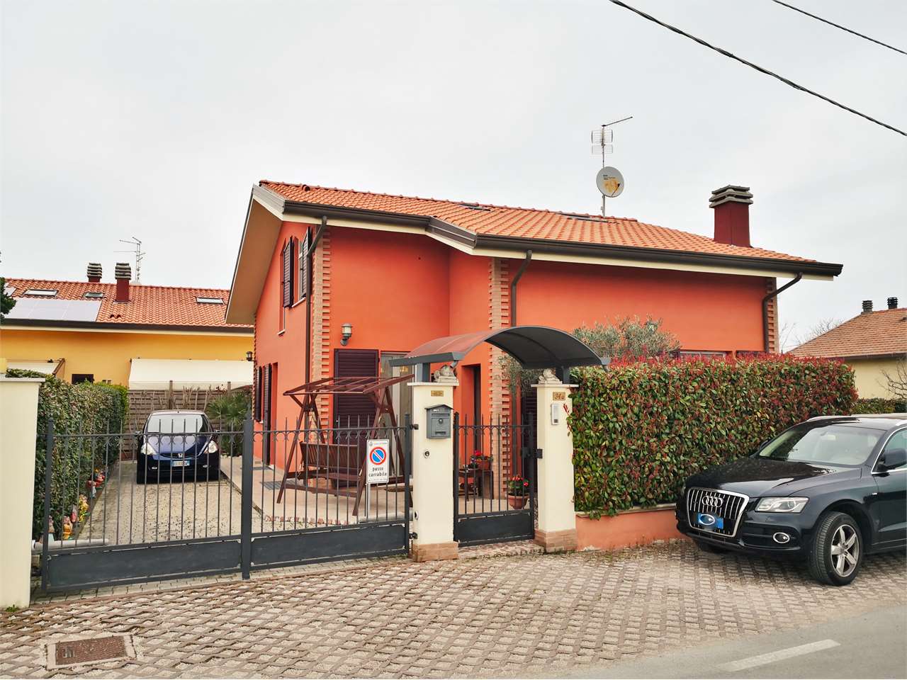 a monte della Statale 16 Adriatica, proponiamo recente e curata villetta indipendente disposta su 3 livelli ed internamente suddivisa in ingresso in un soggiorno luminoso, ampia cucina abitabile, bagno con vasca e camera da letto matrimoniale; al piano sottotetto due ampi vani e bagno con doccia; al piano interrato, taverna con camino, cantina, ripostiglio e bagno lavanderia. Completa la proposta un curato giardino che circonda la villetta.
