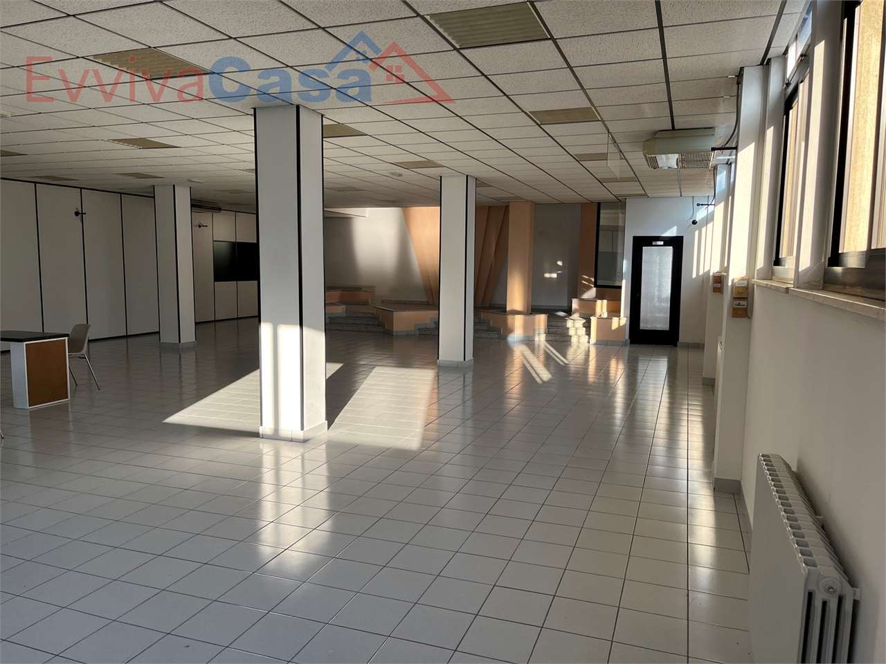 Se hai bisogno di un locale molto ampio e con tanta luce naturale, questo immobile ad Osimo in Via Marco Polo 238 è proprio quello che ti serve. Con ingresso indipendente e con numerosi parcheggi a disposizione, è posizionato al primo piano sottostrada, dato che quella zona di Osimo è coricata sul versante collinare panoramico. Finora accatastato come "luogo di culto", in base al piano regolatore è trasformabile nelle principali destinazioni d'uso, a scelta fra: civile abitazione, ufficio, laboratorio, magazzino, commerciale/negozio. La superficie interna è di circa 380 mq catastali, mentre all'esterno la corte, divisa fra giardino, scala di accesso e terrazzo, occupa altri 96 mq circa. Internamente è stato suddiviso in vari ambienti con pareti "leggere" tipo ufficio, che potrai riposizionare a tuo piacimento. Dispone già di doppi servizi con piatto doccia, ciascuno con antibagno; poi ci sono due stanze tipo ufficio e un ripostiglio; il resto molto ampio è diviso in due ambienti principali che sono l'ingresso e il salone (o uditorio principale). Libero su tre lati, su due di questi ci sono numerose finestre e porte-finestre, mentre il terzo lato è parzialmente interrato quindi presenta finestre di dimensioni ridotte posizionate a livello terreno sul lato parcheggio. Sono presenti vari impianti, tutti funzionanti e corredati di certificazione: - impianto termico di riscaldamento e produzione acqua calda sanitaria, con caldaia a metano e termosifoni in ghisa; - impianto elettrico e di illuminazione, predisposto sotto traccia e con canalature invisibili che passano nella controsoffittatura; - impianto di aria condizionata con vari split e vari motori; - videocitofono. Tutto si trova in ottime condizioni, grazie alla costante manutenzione a cui l'immobile è stato sottoposto. Al piano superiore c'è un negozio di illuminazione, quindi fondamentalmente silenzioso in tutte le ore della giornata. Potrai sfruttare lo spazio a disposizione persino per realizzare delle abitazioni oppure degli uffici in cui lavorare con la massima concentrazione. Rif. SS103