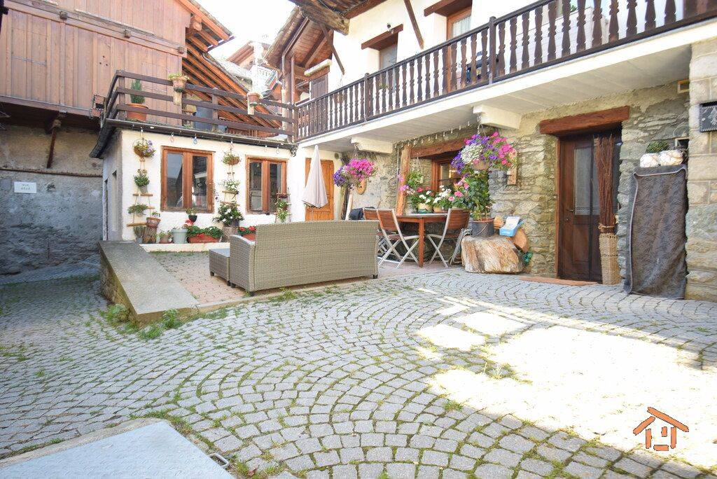 Posta al margine dei resti di un antico villaggio situato a ca. 1400 mt. s.l.m., lungo la strada che conduce a Clavalité, proprietà isolata costituita da una casa indipendente edificata ex-novo negli anni '70, disposta su due piani oltre a sottotetto, con un'area verde ed un piccolo boschetto adiacenti. L'immobile, da sistemare e in parte da ristrutturare, dispone di spazi versatili significativi ed è così strutturato: al piano seminterrato vi sono un ampio vano taverna con zona cucina, rifinito a civile, e un locale di ca. 30 mq. finestrato su due lati, allo stato grezzo, con servizio igienico. Al piano rialzato si trova un appartamento composto da ingresso, tinello con cucinino, due camere, bagno e balcone, oltre ad un vano deposito non collegato all'abitazione, con accesso indipendente. Al piano superiore ampia soffitta - sottotetto. L'edificio è circondato da un terreno di ca. 700 mq. in parte verdeggiante e in parte scosceso e alberato. Questa casa, inabitata da alcuni anni, veniva utilizzata prevalentemente come abitazione estiva (salvo la stufa, è priva di un impianto di riscaldamento); la taverna capiente era sede di eventi conviviali e veniva utilizzata anche quale laboratorio hobbistico per la lavorazione di oggetti in legno e metallo.