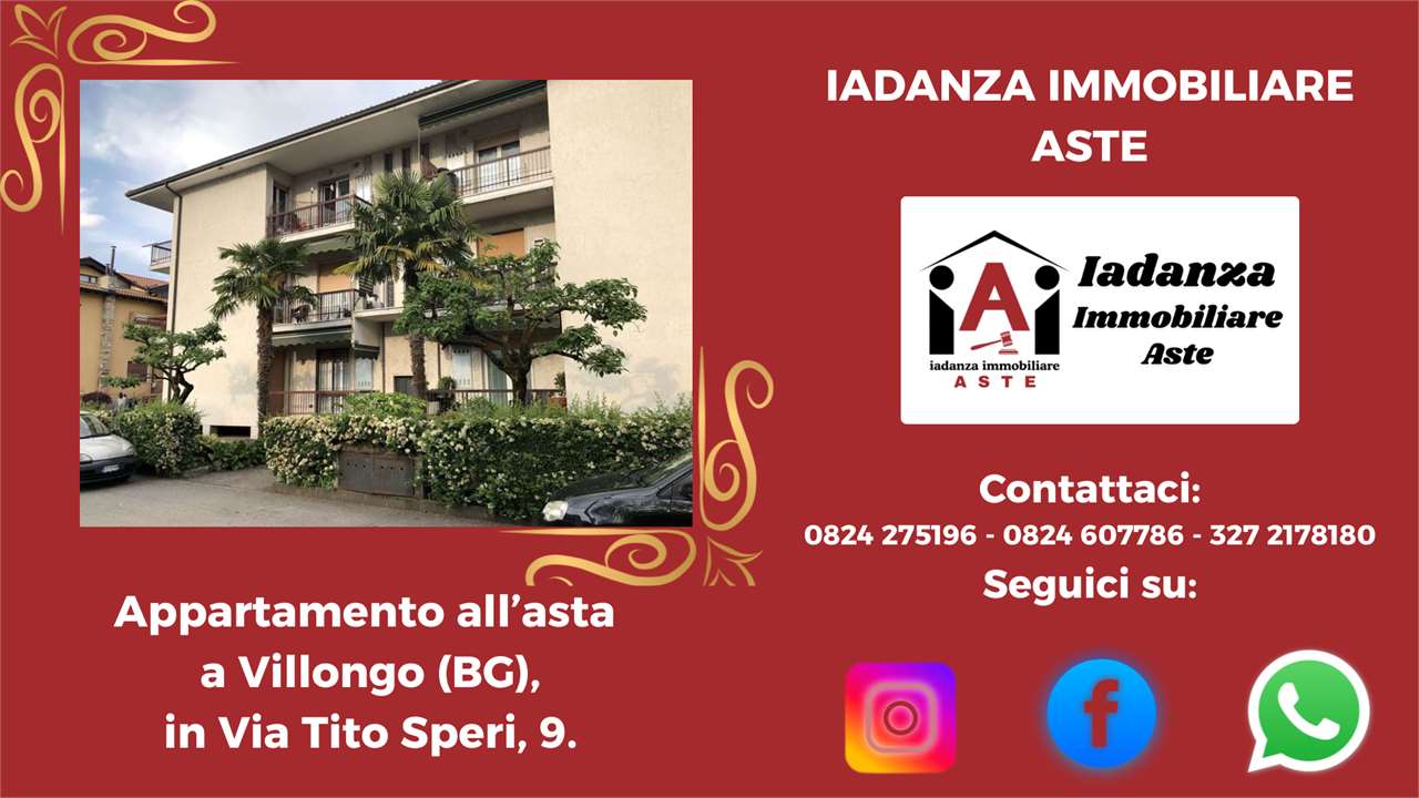 Codice Annuncio: 25TR81 Offerta Minima:40.275,00 Prezzo Base:53.700,00 Valore di Perizia:53.700,00 Data e Ora dellAsta:16 aprile 2026 ore 15:00 Termine Presentazione Offerte: 15 aprile 2026 ore 12:00 ******************************************************************************** N.B: -Le foto e la geolocalizzazione presenti negli annunci potrebbero essere solo indicative. La documentazione ufficiale invece è disponibile su richiesta e solo essa farà fede sul piano legale. CONTATTARE LO STUDIO PER CONFERMA E PER MAGGIORI INFORMAZIONI! -La vendita allAsta dellimmobile è stata disposta dal TRIBUNALE DI COMPETENZA e presuppone che linteressato - qualora intenda partecipare in autonomia - abbia piena conoscenza e consapevolezza dei contenuti di tutta la documentazione riguardante la PROCEDURA se non intende rivolgersi ad un Professionista del Settore! ******************************************************************************** Appartamento trilocale all'asta in Villongo (BG), Via Tito Speri n.9. L'immobile sorge in zona periferica residenziale dotata di servizi di urbanizzazione primaria e secondaria. Composto da soggiorno con angolo cottura, due camere da letto, un bagno, disimpegno notte e due balconi, oltre cantina e autorimessa al piano seminterrato. Lunità immobiliare è ubicata al piano secondo ed è facente parte di edificio condominiale composto da tre piani fuori terra oltre un piano seminterrato. ////////////////////////////////SCOPRI LA DIFFERENZA//////////////////////////////////////// Perché sceglierci? PERCHE DI NOI TI PUOI FIDARE! Ti basta compilare la richiesta presente a lato dellannuncio e riceverai tutta lassistenza necessaria per ricercare ed acquistare limmobile che desideri! ////////////////// PROMOZIONI ESCLUSIVE ONLINE///////////////////////// Oltretutto Inviandoci la tua richiesta tramite il FORM DI CONTATTO, presente sulla destra di tutti gli annunci inseriti sul nostro SITO www.iadanzaimmobiliareaste.com otterrai automaticamente: - Una Consulenza gratuita iniziale. - Una polizza Protezione Casa in OMAGGIO! - La restituzione delle spese di istruttoria (solo in caso di aggiudicazione). - Uno Sconto del 3% sul nostro compenso finale. ///////////////// I NOSTRI PUNTI DI FORZA//////////////////////////////////////// Ciò che ci rende unici è il nostro approccio dedicato e professionale, nell'interesse esclusivo del cliente acquirente. Consulenza Gratuita e Professionale: Sempre disponibili per una consulenza senza impegno, con cortesia e professionalità. Indipendenza e Trasparenza: Operiamo su rappresentanza soltanto in favore dellacquirente, senza l'assillo di dover vendere a tutti i costi, garantendo imparzialità e competenze. La nostra reputazione è la tua prima garanzia. Visite Immobiliari Organizzate: Se desideri visionare un immobile, organizziamo la visita in modo completamente gratuito, occupandoci noi di tutte le formalità telematiche necessarie. Istruttoria accurata: A differenza di molti operatori del Settore che si limitano a "smaltire" immobili come "visti e piaciuti", il nostro approfondito esame della pratica (legale, tecnico, condominiale, fiscale, finanziario) ti assicurerà la tranquillità che cercavi. Noi redigiamo una "Relazione di Fattibilità Tecnico/Legale" prima di ogni partecipazione all'asta che sintetizza ogni aspetto della Procedura. Siamo gli unici insomma a "metterci la faccia". Assistenza dedicata passo dopo passo: Il nostro consulente esperto ti assiste in ogni fase, dalla ricerca all'aggiudicazione e anche oltre. Ricerca Personalizzata: Se non hai tempo per la ricerca, inviaci la tua richiesta tramite il SITO e lo faremo noi per te. Chiarezza Contrattuale: Siamo uno Studio di Consulenza Tecnico/Legale, non un'agenzia immobiliare tradizionale. Il rapporto è regolato da un incarico chiaro, sottoscritto dalle parti, senza sorprese per il Cliente. ////////////////// SERVIZI DI BASE INCLUSI/////////////////////////////////////// Offriamo un pacchetto completo per assisterti e consigliarti nella massima sicurezza: Consulenza gratuita (telefonica o su appuntamento). Analisi documentale approfondita in collaborazione con esperti legali, tecnici, notai e commercialisti. Assistenza completa per ogni adempimento: visite, pratiche, firme digitali, domande di partecipazione, saldi, tasse, consegna immobile, sanatorie, ecc. Visita dellimmobile organizzata gratuitamente dal nostro Studio in via telematica. Consulenza creditizia su misura con un esperto di Banca. Supporto Stragiudiziale per analizzare e gestire situazioni debitorie complesse. ------------------------------------------------------------------------------------------------------------------------ //////////////////////////////////CONTATTACI SUBITO/////////////////////////////////////////// Per saperne di più o inviare una richiesta specifica: Tel: 0824.607786 - 0824.275196 - 327.2178180 Mail: info@iadanzaimmobiliareaste.com Web: www.iadanzaimmobiliareaste.com