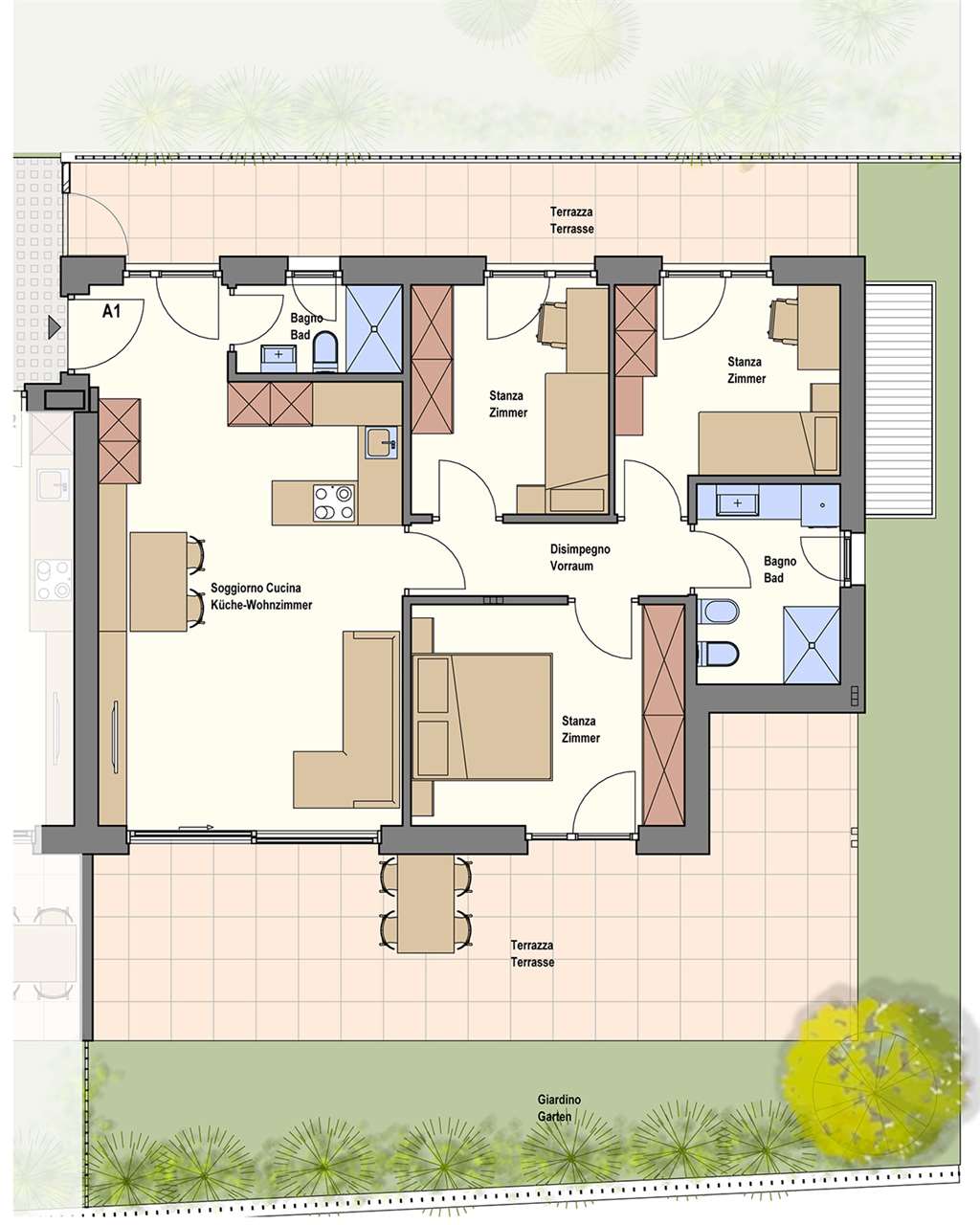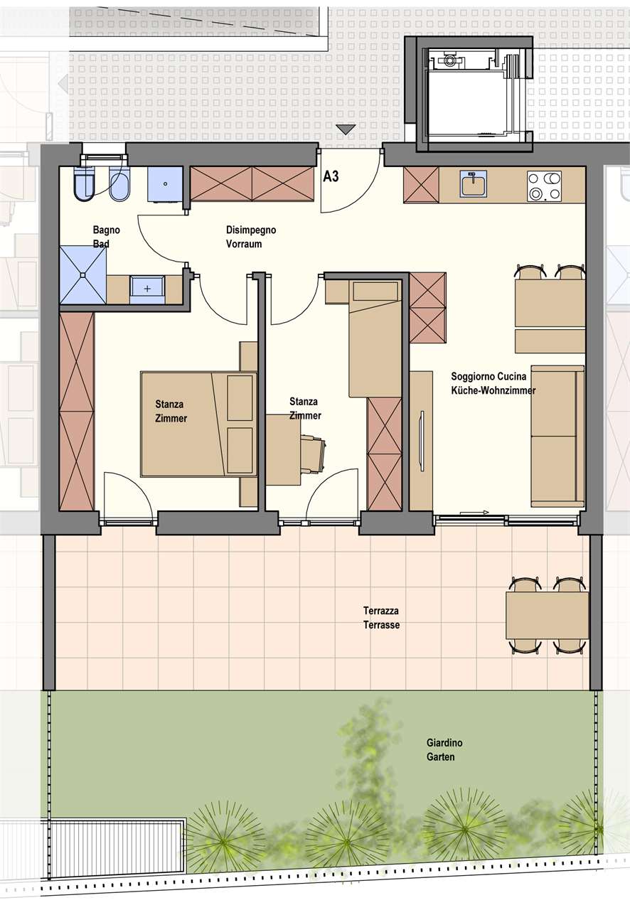 Bolzano: Via Vicenza: Bilocale con giardino privato. Composizione: Una stanza letto, zona giorno composta da soggiorno con angolo cottura, terrazza, giardino privato in posizione interna e soleggiata, cantina al piano interrato, possibilità garage. Il Consiglio di Opera: Posizione centrale accanto ad ogni servizio, casaclima A nature al massimo del risparmio energetico, un investimento per la famiglia e per il futuro. Il Residence: L'innovativo complesso residenziale sorge in posizione strategica di Bolzano. La nostra iniziativa immobiliare si trova in via Vicenza, nel quartiere Gries-San Quirino dove tutti i servizi sono nelle immediate vicinanze. All’interno di questa palazzina troverete bilocali, trilocali e quadrilocali funzionali e ricchi di comodità con terrazza e/o giardino privato. Gli appartamenti saranno dotati delle ultime tecnologie con particolare attenzione al risparmio energetico tanto che sarà classificata Casaclima "A-Nature” con pannelli solari termici per la produzione di acqua calda. Il capitolato e la qualità dei materiali che verranno utilizzati per la costruzione e le finiture saranno di standard elevato con caratteristiche di casa di prestigio. Grandi finestre e portefinestre collegano gli ampi spazi abitativi privati con le superfici esterne siano esse terrazze o giardini privati. Un investimento sicuro per il futuro: Ogni appartamento sarà dotato di SMART HOME: sarà possibile il controllo individuale delle luci, delle tapparelle e dell'impianto di riscaldamento, il comfort sarà garantito anche digitalmente. Grande comodità sarà garantita dai videocitofoni integrati, dal sistema di chiusura centrale e dalla predisposizione per i sistemi di allarme. Il Residence Ines offre parcheggi per biciclette e stazioni di ricarica per biciclette elettriche. Anche le cassette postali saranno al passo con i tempi, l’edificio sarà dotato di spazio dedicato per i pacchi dei corrieri. La palazzina sarà dotata di un ampio giardino condominiale. Grandi finestre e porte collegano gli ampi spazi abitativi privati con le superfici eterne siano essi terrazze o giardini privati. Posizione centrale, qualità della vita, tutto è a portata di mano, Residence Ines permette di raggiungere il centro storico di Bolzano a piedi, tutto diventa accessibile: Infrastrutture, intrattenimento, shopping, assistenza sanitaria e aree verdi pubbliche che sono importanti punti di aggregazione. Vende OPERA immobiliare, immobili di prestigio dal 1992.