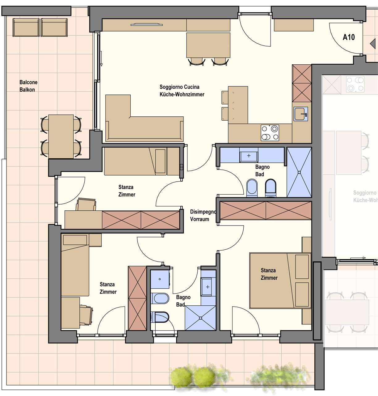 Vendesi appartamento al 1° piano in zona Novacella, composto da ingresso cucina abitabile con balcone, ampio soggiorno con zona pranzo, 3 camere da letto, ripostiglio, bagno finestrato e cantina. Eventuale Garage € 30.000 Wohnung in der Neustifter Zone im 1. Stock, bestehend aus Eingang Wohnküche mit Balkon, grossem Wohnzimmer mit Esszone, 2 Schlafzimmern, Abstellraum, Badezimmer mit Fenster und Keller, zu verkaufen. Eventuelle Garage € 30.000