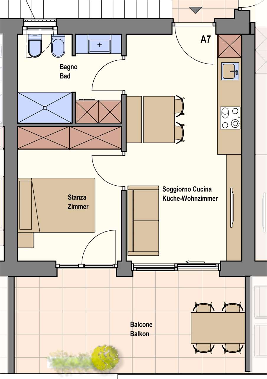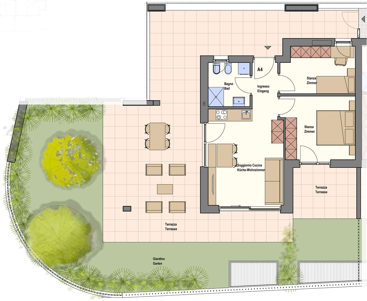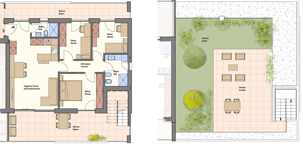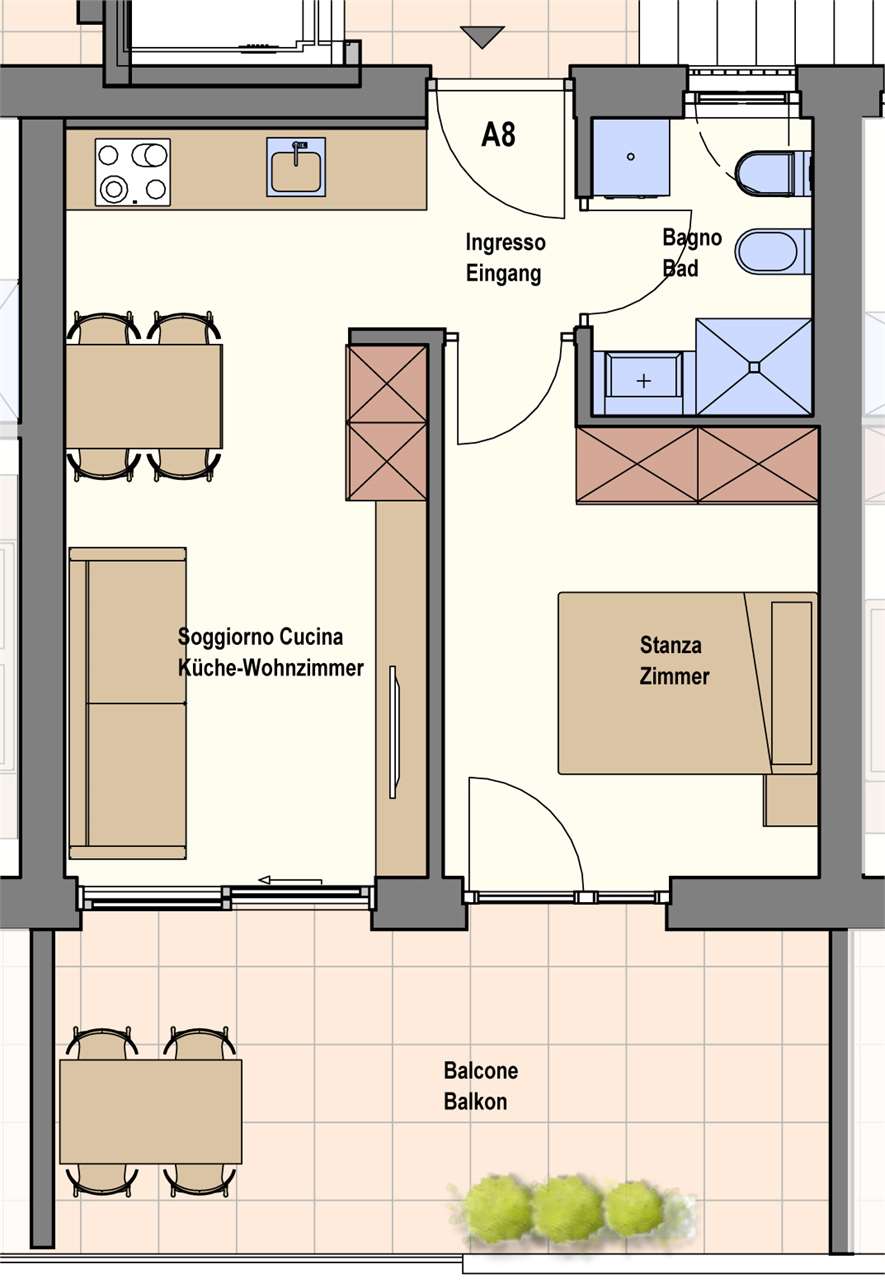 L’appartamento trilocale situato a Campo dei Fiori a Bolzano è un’elegante e moderna unità abitativa, certificata Casa Clima A, che garantisce elevati standard di efficienza energetica e comfort abitativo. Descrizione Generale • Localizzazione: Campo dei Fiori, Bolzano, una zona residenziale tranquilla e ben collegata con i principali servizi e infrastrutture della città. • Tipo di Abitazione: Trilocale arredato. • Certificazione Energetica: Casa Clima A, sinonimo di alta efficienza energetica e ridotti consumi. Interni • Ingresso: L’ingresso accoglie i residenti con uno spazio luminoso e ben organizzato, che conduce direttamente alle varie aree dell’appartamento. • Soggiorno: Un ampio e confortevole soggiorno, arredato con mobili moderni e di alta qualità, ideale per rilassarsi e ricevere ospiti. Grandi finestre lasciano entrare abbondante luce naturale, creando un ambiente luminoso e accogliente. • Cucina: Una cucina moderna e completamente attrezzata con elettrodomestici di ultima generazione, pensili e spazi di lavoro funzionali. La cucina è perfettamente integrata con la zona giorno, favorendo un’atmosfera conviviale. • Camere da Letto: Due camere da letto ben arredate, entrambe dotate di armadi spaziosi e letti confortevoli. La camera principale offre un ambiente rilassante con tonalità neutre e arredi eleganti. • Bagno: Un bagno moderno, dotato di finiture di alta qualità, sanitari sospesi, una spaziosa doccia e ampi specchi che aumentano la sensazione di spazio. Esterni • Terrazzo: Un ampio terrazzo, accessibile dal soggiorno, che offre uno spazio all’aperto privato e tranquillo. Ideale per cene all’aperto, momenti di relax o per coltivare piante e fiori. Il terrazzo gode di una splendida vista sul verde circostante. Altri Dettagli • Arredamento: L’appartamento viene fornito completamente arredato con mobili moderni e di design, scelti per massimizzare il comfort e l’estetica degli spazi. • Efficienza Energetica: Essendo certificato Casa Clima A, l’appartamento beneficia di un eccellente isolamento termico e acustico, che contribuisce a mantenere costi energetici bassi e a garantire un ambiente abitativo salubre. • Comfort: Sistema di riscaldamento a pavimento e impianto di climatizzazione garantiscono un comfort ottimale in ogni stagione. Questo trilocale rappresenta una soluzione abitativa ideale per chi cerca un’abitazione moderna, efficiente e confortevole in una delle zone più piacevoli di Bolzano.