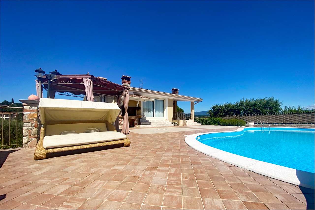 A Soiano del Lago, nel cuore verde della Valtenesi, proponiamo in vendita esclusiva VILLA SINGOLA immersa in un meraviglioso giardino privato di circa 2500 mq, splendidamente piantumato con oltre 40 ulivi secolari, alberi da frutto e agrumi che regalano un'atmosfera autenticamente mediterranea. La residenza principale si sviluppa interamente su un unico livello ed è composta da soggiorno con cucina separata, tre camere da letto e due bagni, soluzione ideale per chi desidera massima praticità e comfort quotidiano. Gli ambienti sono luminosi, accoglienti e ben distribuiti, perfetti per vivere tutto lanno o come prestigiosa seconda casa sul Lago di Garda. Al piano seminterrato troviamo un ampio spazio indipendente, ideale come dependance per ospiti, studio privato o soluzione per lo smart working, offrendo massima flessibilità duso. A rendere questa proprietà ancora più unica è la splendida piscina panoramica, posizionata in modo da offrire una suggestiva vista sul lago e sulle dolci colline circostanti. Larea esterna è curata in ogni dettaglio, con ampie zone relax e porticati perfetti per vivere allaperto in ogni stagione. La proprietà include una grande autorimessa con doppia basculante elettrica, in grado di ospitare più veicoli, oltre a un comodo portico antistante l'abitazione dove parcheggiare altre automobili. PLUS davvero interessante: c'è la possibilità di AMPLIARE la villa e di EDIFICARE una BIFAMILIARE nel giardino con ingresso totalmente indipendente, ideale per chi desidera realizzare due unità abitative per i figli o da mettere in locazione. La posizione è tranquilla e riservata, in una zona collinare sempre ben ventilata, a pochi minuti da tutti i servizi e a soli 10 minuti dalle spiagge di Moniga e Manerba del Garda.