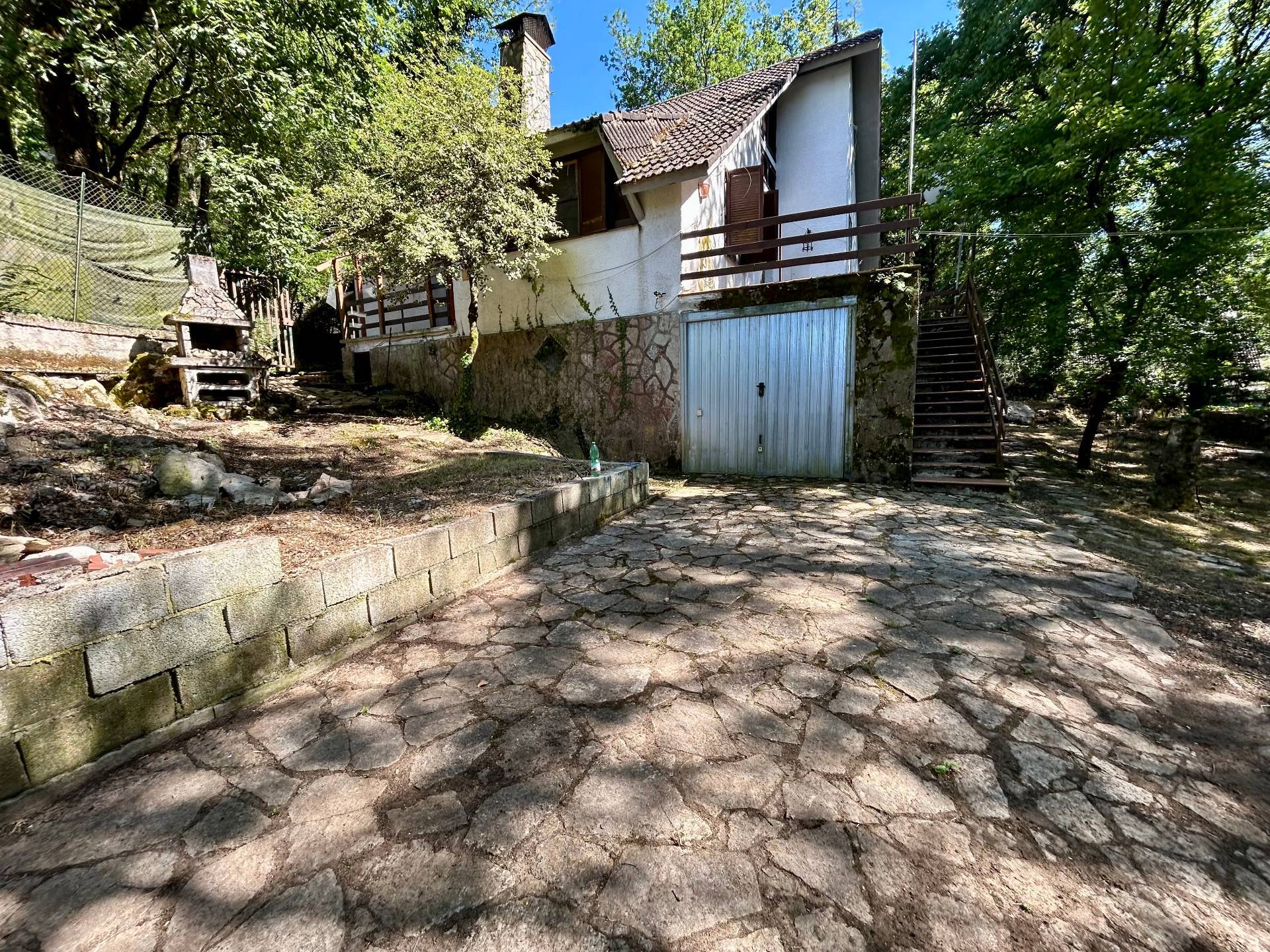 SULLA STRADA PRINCIPALE PROPONIAMO PORZIONE DI VILLINO SU 3 LIVELLI. AL PIANO TERRA: SALONE CON CAMINO,CUCINA,BAGNO. AL PIANO SECONDO: 2 CAMERE MATRIMONIALI, CAMERETTA, BAGNO. AL PIANO MANSARDA, AMPIA SOFFITTA. COMPLETA LA PROPRIETA' UN AMPIO GARAGE E 4500 MQ CA. DI GIARDINO.