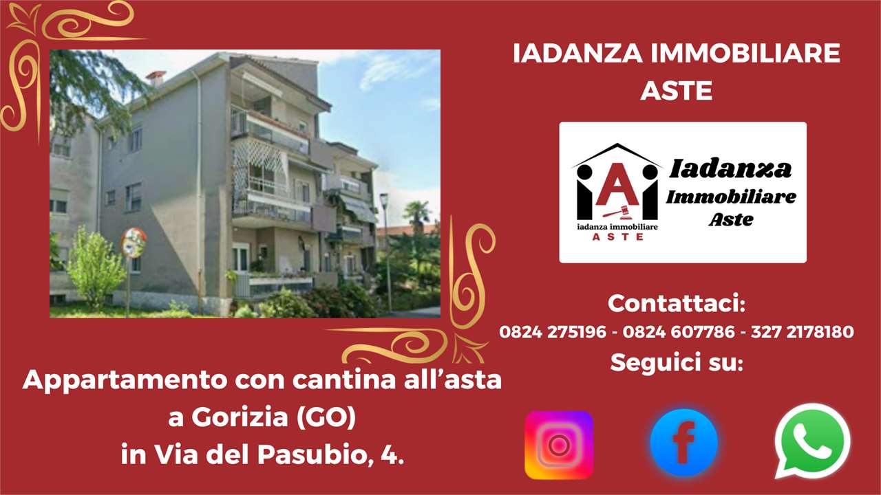 Codice Annuncio: AQR+ 24AQR+6 Offerta Minima: 86.700,00 Prezzo Base: 115.600,00 Valore di Perizia: 126.417,20 Data e Ora dellAsta: 10/04/2026 11:00 Termine Presentazione Offerte: 08/04/2026 13:00 ******************************************************************************** N.B: -Le foto e la geolocalizzazione presenti negli annunci potrebbero essere solo indicative. La documentazione ufficiale invece è disponibile su richiesta e solo essa farà fede sul piano legale .CONTATTARE LO STUDIO PER CONFERMA E PER MAGGIORI INFORMAZIONI ! -La vendita allAsta dellimmobile è stata disposta dal TRIBUNALE DI COMPETENZA e presuppone che linteressato - qualora intenda partecipare in autonomia - abbia piena conoscenza e consapevolezza dei contenuti di tutta la documentazione riguardante la PROCEDURA se non intende rivolgersi ad un Professionista del Settore ! -Per avere maggiori informazioni o per richiedere un sopralluogo potrai contattarci ai seguenti recapiti : Tel: 0824.607786 - 0824.275196 - 327.2178180 Mail: info@iadanzaimmobiliareaste.com Web: www.iadanzaimmobiliareaste.com ******************************************************************************** Quadrilocale allasta a Gorizia, in Via del Pasubio 4. Limmobile si trova in zona semicentrale, inserito in un contesto residenziale tranquillo e ben servito, con presenza di servizi di urbanizzazione primaria e secondaria. La posizione garantisce un buon equilibrio tra comodità e riservatezza, con traffico prevalentemente locale e facilità di parcheggio. Labitazione è ubicata al primo piano di un edificio condominiale di tre piani fuori terra. Al suo interno, l'immobile è così composto: luminoso soggiorno con cucina open space, tre camere da letto, una stanza aggiuntiva utilizzabile come studio o quarta camera, bagno, ripostiglio e terrazza. Completa la proprietà una cantina posta al piano seminterrato. ------------------------------------------------------------------------------------------------------------------------ ////////////////////////////////SCOPRI LA DIFFERENZA//////////////////////////////////////// Perché sceglierci? PERCHE DI NOI TI PUOI FIDARE! Ti basta compilare la richiesta presente a lato dellannuncio e riceverai tutta lassistenza necessaria per ricercare ed acquistare limmobile che desideri! ////////////////// PROMOZIONI ESCLUSIVE ONLINE///////////////////////// Oltretutto Inviandoci la tua richiesta tramite il FORM DI CONTATTO, presente sulla destra di tutti gli annunci inseriti sul nostro SITO www.iadanzaimmobiliareaste.com otterrai automaticamente: - Una Consulenza gratuita iniziale. - Una polizza Protezione Casa in OMAGGIO! - La restituzione delle spese di istruttoria (solo in caso di aggiudicazione). - Uno Sconto del 3% sul nostro compenso finale. ///////////////// I NOSTRI PUNTI DI FORZA//////////////////////////////////////// Ciò che ci rende unici è il nostro approccio dedicato e professionale, nell'interesse esclusivo del cliente acquirente. Consulenza Gratuita e Professionale: Sempre disponibili per una consulenza senza impegno, con cortesia e professionalità. Indipendenza e Trasparenza: Operiamo su rappresentanza soltanto in favore dellacquirente, senza l'assillo di dover vendere a tutti i costi, garantendo imparzialità e competenze. La nostra reputazione è la tua prima garanzia. Visite Immobiliari Organizzate: Se desideri visionare un immobile, organizziamo la visita in modo completamente gratuito, occupandoci noi di tutte le formalità telematiche necessarie. Istruttoria accurata: A differenza di molti operatori del Settore che si limitano a "smaltire" immobili come "visti e piaciuti", il nostro approfondito esame della pratica (legale, tecnico, condominiale, fiscale, finanziario) ti assicurerà la tranquillità che cercavi. Noi redigiamo una "Relazione di Fattibilità Tecnico/Legale" prima di ogni partecipazione all'asta che sintetizza ogni aspetto della Procedura. Siamo gli unici insomma a "metterci la faccia". Assistenza dedicata passo dopo passo: Il nostro consulente esperto ti assiste in ogni fase, dalla ricerca all'aggiudicazione e anche oltre. Ricerca Personalizzata: Se non hai tempo per la ricerca, inviaci la tua richiesta tramite il SITO e lo faremo noi per te. Chiarezza Contrattuale: Siamo uno Studio di Consulenza Tecnico/Legale, non un'agenzia immobiliare tradizionale. Il rapporto è regolato da un incarico chiaro, sottoscritto dalle parti, senza sorprese per il Cliente. ////////////////// SERVIZI DI BASE INCLUSI/////////////////////////////////////// Offriamo un pacchetto completo per assisterti e consigliarti nella massima sicurezza: Consulenza gratuita (telefonica o su appuntamento). Analisi documentale approfondita in collaborazione con esperti legali, tecnici, notai e commercialisti. Assistenza completa per ogni adempimento: visite, pratiche, firme digitali, domande di partecipazione, saldi, tasse, consegna immobile, sanatorie, ecc. Visita dellimmobile organizzata gratuitamente dal nostro Studio in via telematica. Consulenza creditizia su misura con un esperto di Banca. Supporto Stragiudiziale per analizzare e gestire situazioni debitorie complesse. ------------------------------------------------------------------------------------------------------------------------ CONTATTACI SUBITO Per avere maggiori informazioni o per richiedere un sopralluogo potrai contattarci ai seguenti recapiti : Tel: 0824.607786 - 0824.275196 - 327.2178180 Mail: info@iadanzaimmobiliareaste.com Web: www.iadanzaimmobiliareaste.com
