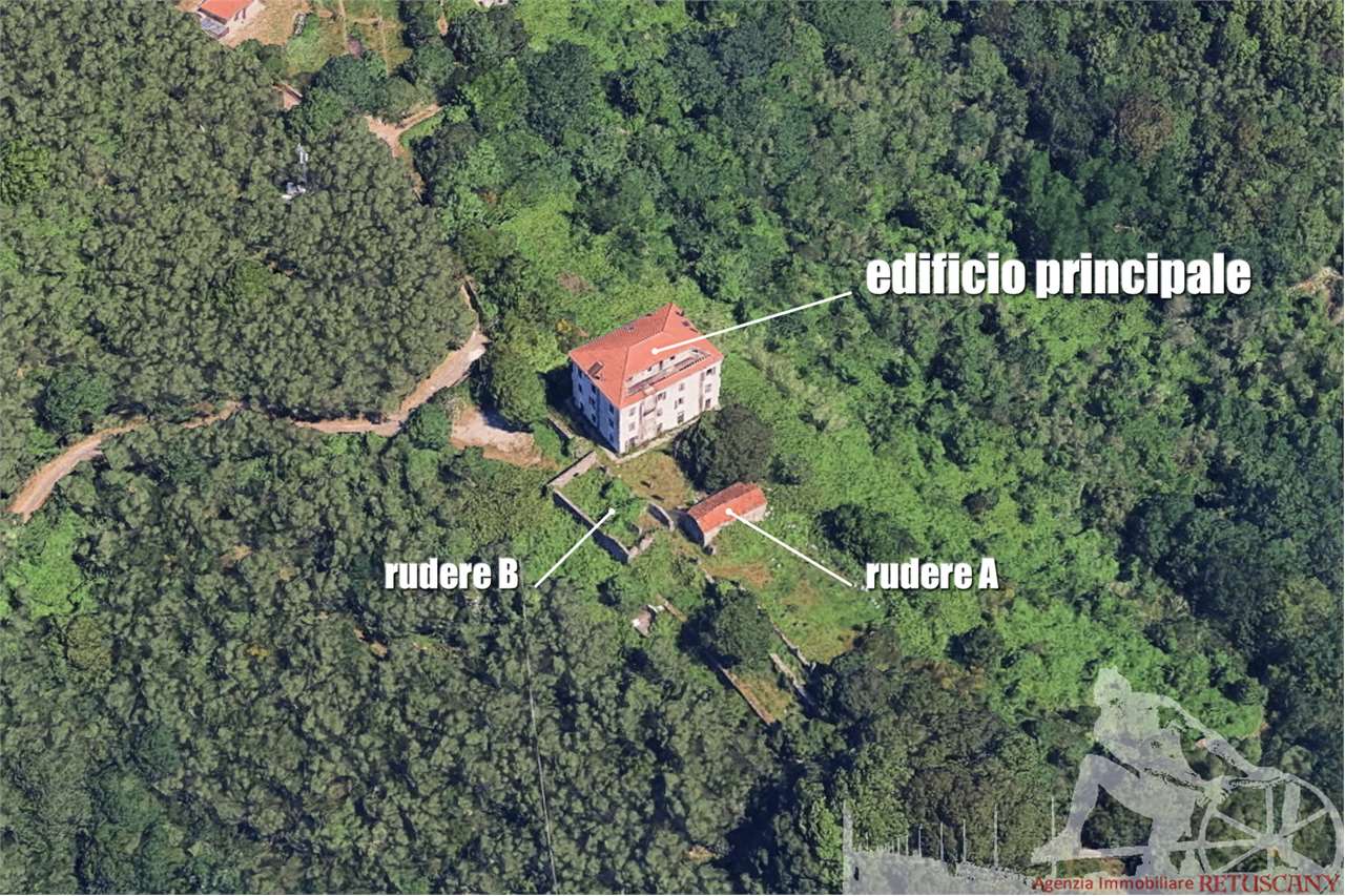 NOSTRA ESCLUSIVA: Complesso immobiliare unico in posizione dominante sopra la collina di Ameglia con splendida vista panoramica sulla valle del fiume Magra, sulle Alpi Apuana e sul mare fino a Forte dei Marmi, a meno di quattro chilometri dal porticciolo turistico di Bocca di Magra. Il complesso comprende una villa singola e due ruderi rurali. La villa è distribuita su tre piani fuori terra oltre al sottotetto e all'interrato, di complessivi 880 mq circa. I due ruderi rurali, entrambi distribuiti su due piani fuori terra, aventi una superficie lorda di 96 mq circa, il rudere A, e di 88 mq circa, il rudere B. Tutti gl edifici possono essere liberamente modificati internamente con destinazioni residenziali o turistico ricettive. Terreno di pertinenza di circa 21.000 mq. Il complesso è in pessime stato di manutenzione e necessità di un completo restauro e recupero.