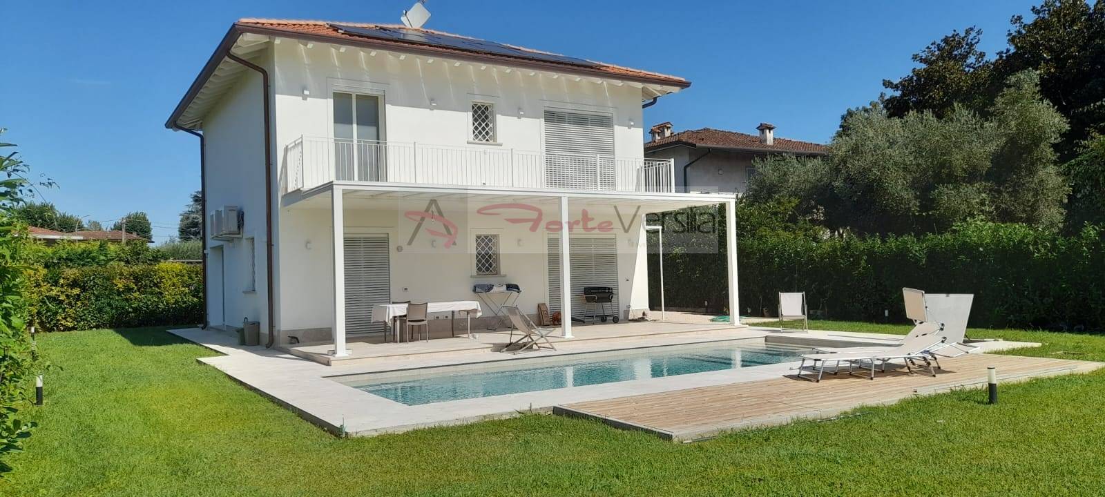 <strong>RIF. 3082 | PIETRASANTA | VERSILIA I TOSCANA I ITALY</strong><br><br><strong>Moderna Villa Unifamiliare di Nuova Costruzione con Piscina </strong><br><br>A pochi minuti dal centro storico di Pietrasanta: l’abitazione ideale per chi cerca comfort, privacy, spazi ben organizzati e le più recenti tecnologie attualmente disponibili nel mondo delle costruzioni. <br><br><strong>Caratteristiche principali:</strong><br><br><ul><li class="ql-indent-1"><strong>Piano Terra:</strong> Spaziosa e luminosa zona living, cucina abitabile Arredata, dispensa, Camera doppia con Bagno en-suite, Bagno di servizio, ampia terrazza con portico coperto perfetto per momenti all’aperto.</li><li class="ql-indent-1"><strong>Piano Primo:</strong> Camera matrimoniale padronale con bagno en-suite, locale armadi e accesso su grande balcone, ulteriori due camere matrimoniali, ciascuna con bagno en-suite e balcone.</li></ul><br><br><strong>Esterni e dotazioni:</strong><br><ul><li><strong>Piscina</strong> di grandi dimensioni</li><li><strong>Giardino</strong> privato di circa 1600 mq con posti auto interni fino a 3 auto.</li><li><strong>Rifiniture di pregio</strong>: pavimenti in marmo nella zona giorno, parquet nella zona notte e bagni in marmo rifiniti con stucchi pregiati, ceramiche sanitarie arredi bagno e rubinetterie di design.</li><li><strong>Infissi alluminio</strong>, portone blindato, impianto di allarme, cancello automatico.</li><li><strong>Pannelli fotovoltaico </strong></li><li><strong>Riscaldamento a pavimento </strong></li><li><strong>Aria condizionata</strong></li></ul><br><br><strong>Perché scegliere questa villa?</strong><br><ul><li><strong>Nuova costruzione, </strong>appena ultimata, classe energetica elevata grazie alle più recenti tecnologie costruttive.</li><li><strong>Arredata </strong>con arredi moderni.</li><li><strong>Materiali </strong>di grande pregio e ottime finiture.</li><li><strong>Posizione strategica</strong>, vicina al centro di Pietrasanta.</li><li><strong>Grande giardino</strong> privato e spazio per i posti auto.</li><li><strong>Ambienti luminosi</strong> e curati in ogni dettaglio.</li><li><strong>Spazi ottimizzati</strong> per la vita quotidiana e per momenti di relax.</li><li><strong>Massima privacy</strong> e tranquillità.</li></ul><br><br><strong>Vivere a Pietrasanta</strong> significa immergersi in un ambiente ricco di arte e cultura, circondato dalla bellezza delle Alpi Apuane e dal mare della Versilia. La città, con il suo centro storico affascinante, è famosa per la lavorazione del marmo e ospita numerosi artisti. La vita è tranquilla ma stimolante, con eventi culturali e opportunità di svago. Il clima è piacevole, e la vicinanza al mare e alle montagne offre molte possibilità di svago all'aria aperta.<br><br><br><strong>Collegamenti:</strong><br><ul><li><strong>Autostrada:</strong> Accesso rapido all'autostrada A12 per collegamenti verso Lucca, Pisa e Firenze.</li><li><strong>Stazione ferroviaria:</strong> La stazione di Pietrasanta, con collegamenti diretti verso le principali città toscane.</li><li><strong>Aeroporti:</strong> A breve distanza dagli aeroporti internazionali di Pisa (circa 40 km) e Firenze (circa 100 km).</li><li><strong>Servizi locali:</strong> Nelle immediate vicinanze si trovano scuole, negozi, supermercati e centri sportivi, rendendo la zona perfetta per le famiglie.</li><li><strong>Mare: </strong>In soli 5 minuti è possibile raggiungere gli stabilimenti balneari di Marina di Pietrasanta.</li></ul><br><br>Questa villa offre il mix perfetto tra modernità, comfort, posizione e prezzo. Contattaci per maggiori informazioni o per organizzare una visita!<br><br><strong>Per Info e Appuntamenti:</strong><br><strong>Monia 351 94 26 963</strong><br><strong>Patrizia 389 83 44 002</strong><br><strong>www.forteversilia.it</strong>