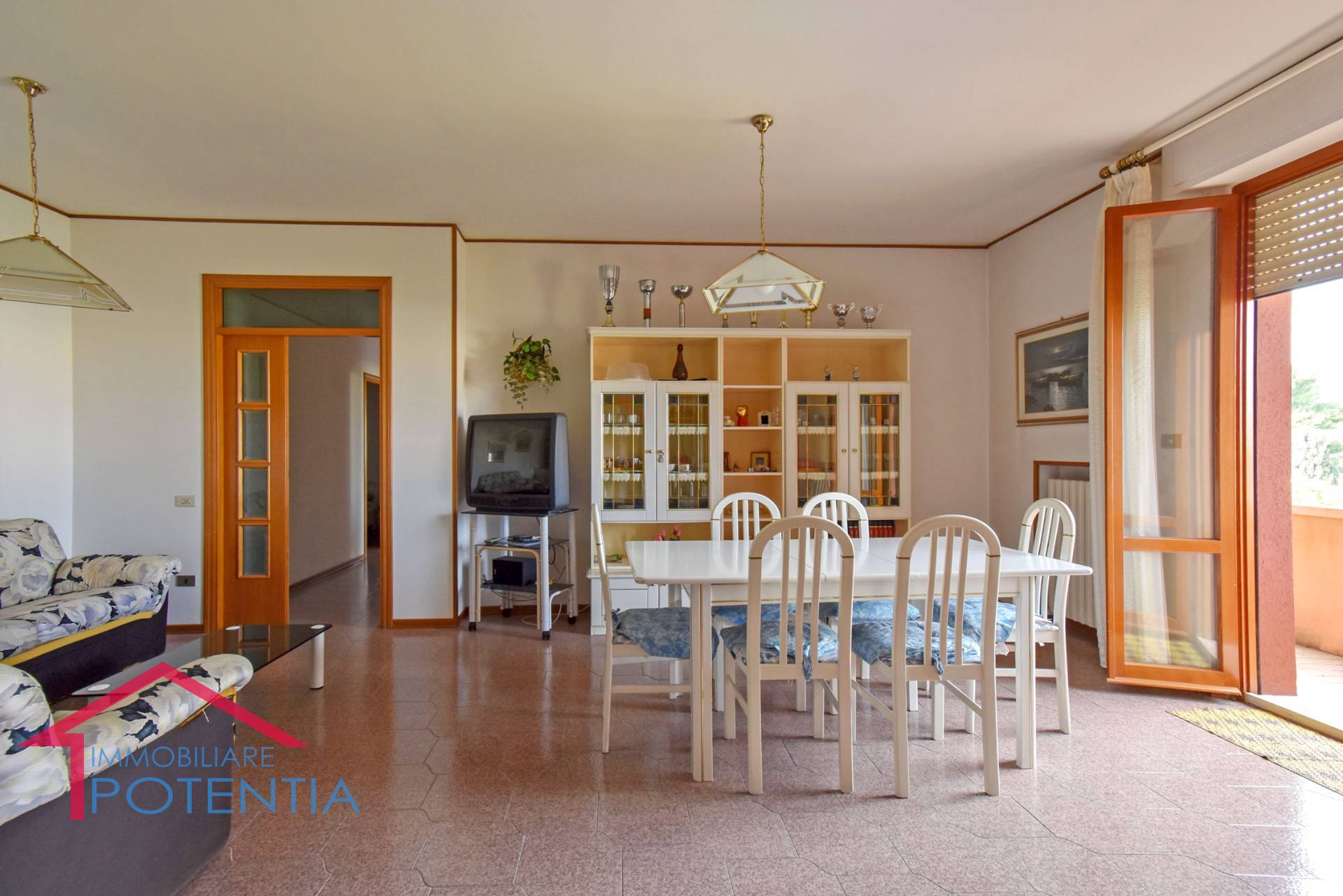 PORTO POTENZA PICENA - VIA PAGANINI, 55<br>Nel Quartiere Musicisti proponiamo in vendita un luminoso APPARTAMENTO di 96 mq situato al terzo piano di una palazzina servita da ascensore. L'immobile gode di una posizione invidiabile, con un affaccio diretto sul verde di un rigoglioso parco pubblico che assicura silenzio e una splendida vista aperta. <br>La comodità è assoluta: con una piacevole passeggiata di soli 5 minuti si raggiunge il centro cittadino, mentre le spiagge distano appena 400 metri.<br>L'ingresso ci accoglie in un ampio soggiorno luminoso, comunicante con un cucinino separato e funzionale. Entrambi gli ambienti si aprono su un BALCONE di 9 mq, uno sfogo esterno perfetto per godersi il panorama sul parco. <br>Nella zona notte troviamo una spaziosa CAMERA MATRIMONIALE e una CAMERA DOPPIA, quest'ultima impreziosita da un secondo BALCONE privato di 5 mq. <br>Completano l'abitazione un generoso bagno principale, attrezzato sia con vasca che con cabina doccia e un comodo ripostiglio che, per dimensioni e disposizione, si presta ottimamente a essere trasformato in un secondo bagno di servizio.<br>A dare ulteriore valore alla proprietà troviamo un GARAGE di ben 25 mq al piano seminterrato, uno spazio ideale non solo per l'auto, ma anche per custodire biciclette e attrezzature sportive.<br>L'immobile, edificato nel 1988, si presenta in buone condizioni generali e rappresenta una scelta eccellente per chi desidera vivere vicino al mare senza rinunciare alla praticità dei servizi sotto casa.<br>Contattaci per maggiori informazioni e fissare un appuntamento.<br><br>OPEN DAY SABATO 18 APRILE 2026<br>DALLE 9.30 ALLE 11.30<br>Prenotazione obbligatoria