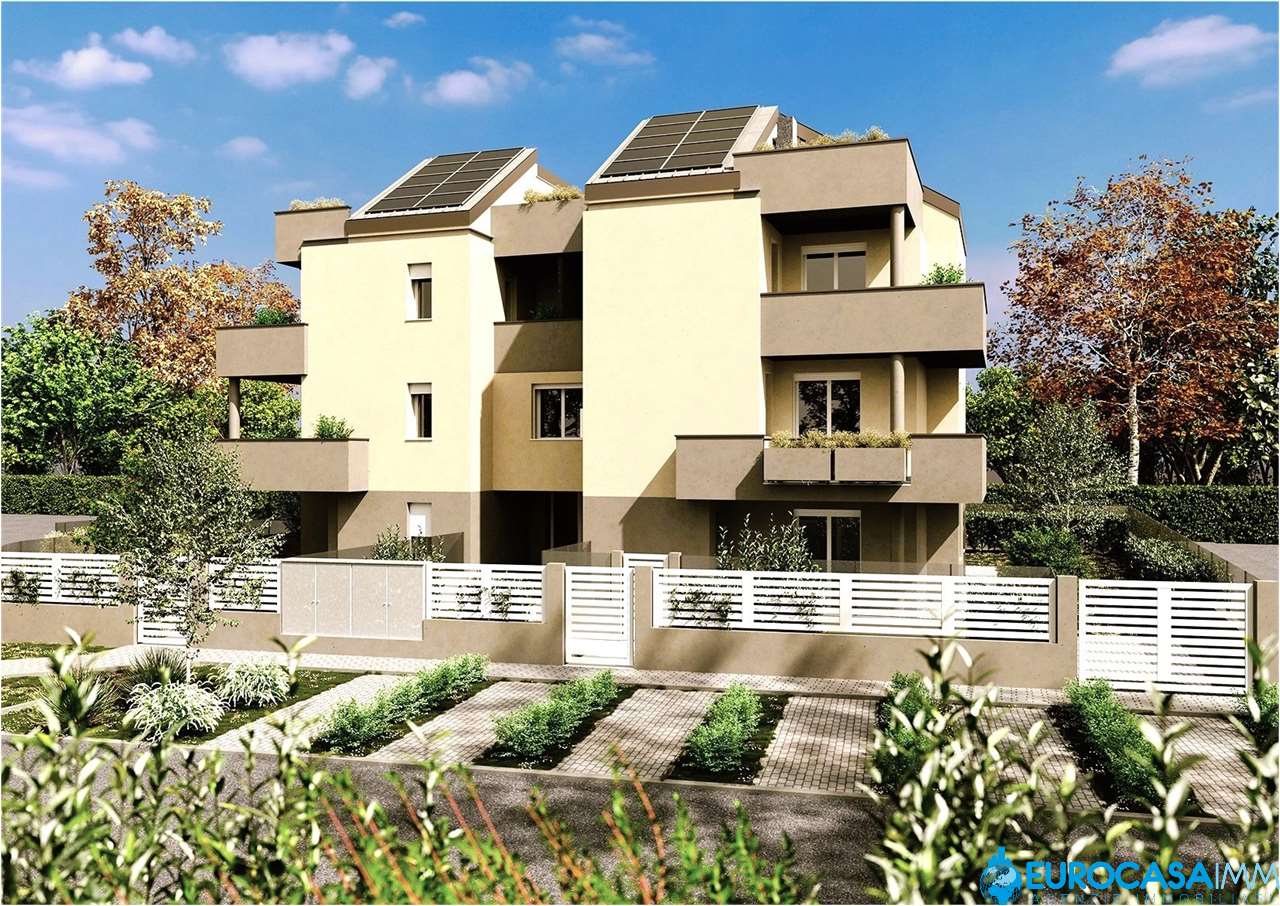 Splendidi appartamenti immersi nel verde in costruzione a Rimini, in località Viserba monte, con consegna prevista per fine 2027. L’appartamento situato al piano terra del blocco UMI 2 con oltre 100 mq di giardino, è composto da ingresso, ampio soggiorno con angolo cottura ed accesso al giardino privato, camera matrimoniale con bagno privato finestrato, altra camera matrimoniale, camera singola, secondo bagno ed infine lavanderia. Tutti gli ambienti hanno accesso alla corte esterna. Da abbinare all'appartamento, non compresi nel prezzo, cantina ( i prezzi variano da un minimo di € 12.000 ad un massimo di € 17.000) posto auto di € 24.000 o in alternativa box auto (da € 33.000 ad € 68.000). La palazzina di 17 appartamenti costruita in classe energetica A, presenta caratteristiche uniche ed esclusive come grandi spazi verdi con area giochi, impianto fotovoltaico, infissi in PVC, impianto di climatizzazione, sanitari sospesi, teleriscaldamento a pavimento e predisposizione impianto anti intrusione. L'immobile è situato in una zona residenziale ben servita, vicino al centro Studi ed a circa 500 metri dal mare comodamente raggiungibile tramite piste ciclabili e pedonali.