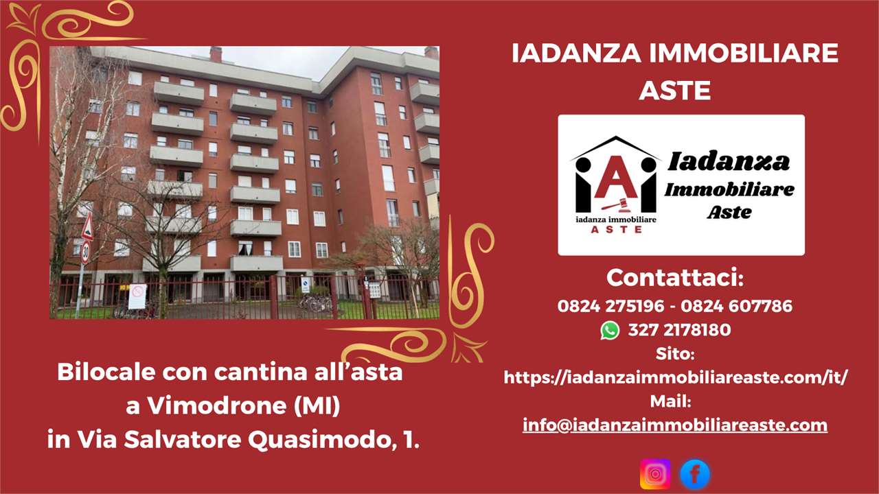 Codice Annuncio: V000979 Offerta Minima: 96.750,00 Prezzo Base:129.000,00 Valore di Perizia:128.700,00 Data e Ora dellAsta: 26/05/2026 11:00 Termine presentazione offerte: 23/05/2026 13:00 Bilocale con cantina all'asta a Vimodrone (MI), in Via Salvatore Quasimodo,1. L'immobile è situato in una zona residenziale tranquilla ma ben servita, con la metropolitana linea verde (M2) facilmente raggiungibile, oltre a negozi, servizi e collegamenti diretti verso Milano. L'unità abitativa si trova al 3° piano di un condominio con ascensore e, al suo interno, risulta così composta: soggiorno con angolo cottura, una camera, un servizio igienico e un balcone. Completa la proprietà una cantina di pertinenza. Per maggiori dettagli, documentazione completa o foto aggiuntive, visita il nostro Sito ufficiale o chiamaci. NOTE IMPORTANTI -Le informazioni, immagini e geolocalizzazione sono indicative e non costituiscono elemento contrattuale. -La documentazione ufficiale della procedura è lunico riferimento valido ai fini legali. -Si consiglia unattenta analisi tecnica e legale prima della partecipazione. Se hai bisogno di informazioni in modo rapido e senza impegno ti basterà chiamarci o scriverci tramite il nostro Sito Iadanza Aste Consulenza specializzata in immobili allasta su tutto il territorio nazionale. È possibile inoltre richiedere sopralluoghi tramite i recapiti dello Studio. -IADANZA ASTE- ////////////////////////////////SCOPRI LA DIFFERENZA////////////////////////// Perché sceglierci? Perché di noi ti puoi fidare ! Garantiamo assistenza completa per lacquisto di immobili allasta, con un approccio professionale, trasparente e orientato esclusivamente allinteresse dellacquirente. Cerca su Google Iadanza Immobiliare Aste per accedere a tutti i dettagli e richiedere assistenza gratuita. Vantaggi per chi vorrà avvalersi della nostra collaborazione : - Prima Consulenza gratuita e senza impegno - Analisi preventiva tecnico-legale - Supporto completo in tutte le fasi - Assistenza finanziaria personalizzata - Gestione operativa dellintero processo di acquisizione Servizi inclusi - Analisi documentale con professionisti dedicati - Supporto durante visite e verifiche - Assistenza nelle pratiche e nelle procedure - Affiancamento fino alla conclusione delloperazione Rif. Annuncio: 20B564
