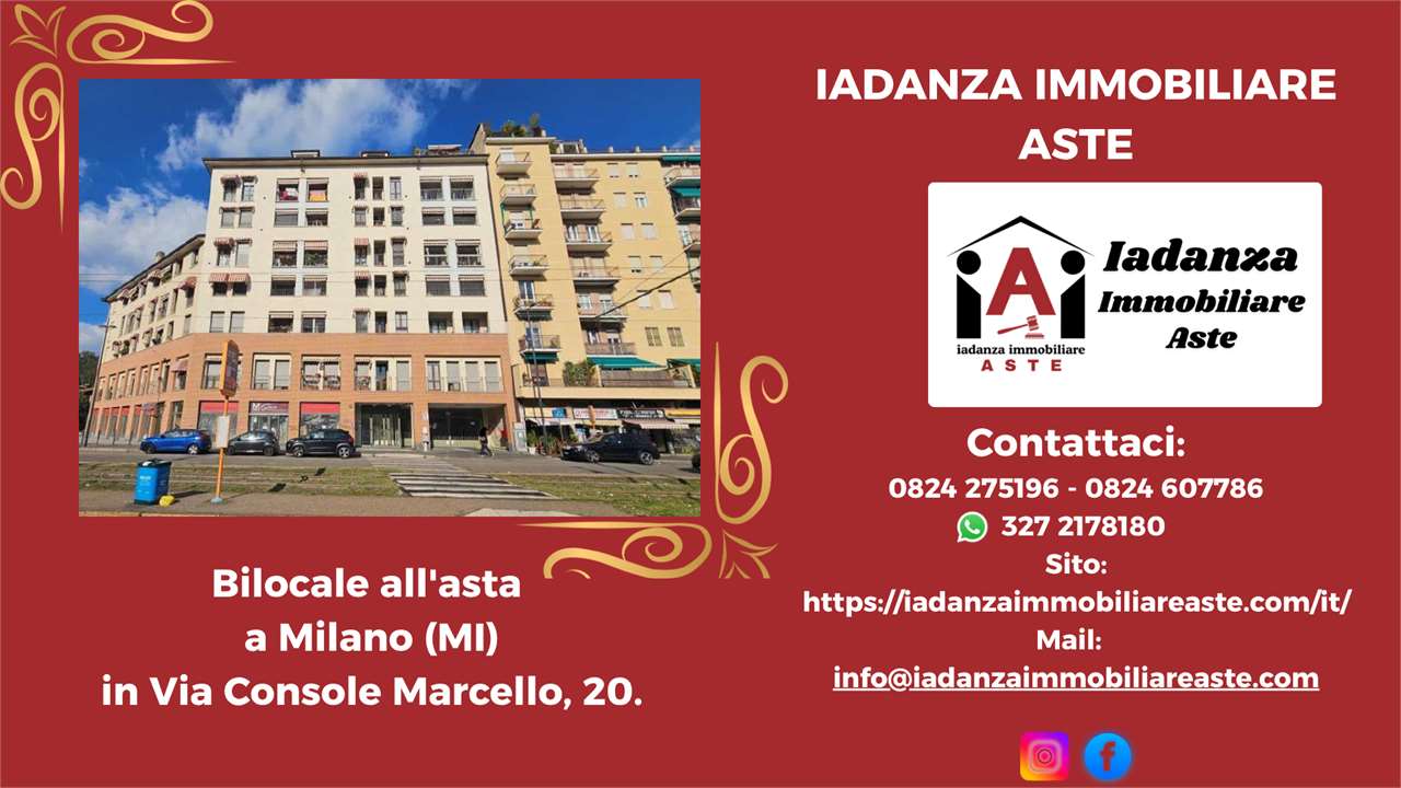 Codice Annuncio: V000994 B Offerta Minima: 101.250,00 Prezzo Base: 135.000,00 Valore di Perizia: 143.500,00 Data e Ora dellAsta: 21/05/2026 ore 15:30 Termine presentazione offerte: entro ore 13:00 del giorno precedente Appartamento (bilocale) all'asta sito in Milano, via Console Marcello n. 20. L'immobile sorge in zona periferica (Musocco/Certosa), dotata di servizi di urbanizzazione primaria e secondaria e collegamenti pubblici. Labitazione è ubicata al piano primo e facente parte di un edificio di 6 piani fuori terra oltre piano terra commerciale e piani interrati. Al suo interno l'appartamento è così composto: soggiorno/camera, cucina, bagno, cantina. Per maggiori dettagli, documentazione completa o foto aggiuntive, visita il nostro Sito ufficiale o chiamaci. NOTE IMPORTANTI -Le informazioni, immagini e geolocalizzazione sono indicative e non costituiscono elemento contrattuale. -La documentazione ufficiale della procedura è lunico riferimento valido ai fini legali. -Si consiglia unattenta analisi tecnica e legale prima della partecipazione. Se hai bisogno di informazioni in modo rapido e senza impegno ti basterà chiamarci o scriverci tramite il nostro Sito Iadanza Aste Consulenza specializzata in immobili allasta su tutto il territorio nazionale. È possibile inoltre richiedere sopralluoghi tramite i recapiti dello Studio. -IADANZA ASTE- ////////////////////////////////SCOPRI LA DIFFERENZA////////////////////////// Perché sceglierci? Perché di noi ti puoi fidare ! Garantiamo assistenza completa per lacquisto di immobili allasta, con un approccio professionale, trasparente e orientato esclusivamente allinteresse dellacquirente. Cerca su Google Iadanza Immobiliare Aste per accedere a tutti i dettagli e richiedere assistenza gratuita. Vantaggi per chi vorrà avvalersi della nostra collaborazione : - Prima Consulenza gratuita e senza impegno - Analisi preventiva tecnico-legale - Supporto completo in tutte le fasi - Assistenza finanziaria personalizzata - Gestione operativa dellintero processo di acquisizione Servizi inclusi - Analisi documentale con professionisti dedicati - Supporto durante visite e verifiche - Assistenza nelle pratiche e nelle procedure - Affiancamento fino alla conclusione delloperazione Rif. Annuncio: B 638/2025