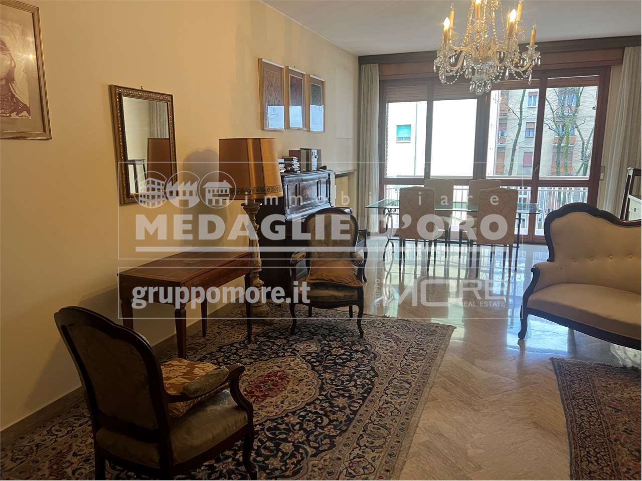 VX2888 - In zona strategica, e più precisamente tra Viale Tassoni / Piazzale Risorgimento in posizione MOLTO TRANQUILLA e comoda al centro storico, vendesi appartamento di 119 mq comm.li posto al piano 4° (con ascensore) composto da: ingresso, salotto, sala da pranzo con balcone, cucinotto, disimpegno notte, 2 camere, 1 bagno. Al piano interrato una cantina e un garage per auto medio/piccola. Riscaldamento e acqua calda centralizzati con contacalorie, 1 motore per aria condizionata con pompa di calore sul balcone e 4 split interni (uno per ogni stanza). INTERNAMENTE: è stato ristrutturato completamente nel 2023, rifatto cucinotto, bagno, impianto idraulico e impianto elettrico, infissi con vetrocamera e zanzariere, cartongesso a soffitto con faretti e passaggio tubi aria condizionata. Sono rimasti solo i pavimenti originali nella zona giorno ma levigati, mentre nelle camere sono nuovi. ESTERNAMENTE: Le facciate sono appena state rifatte (2025), compreso i balconi, i pavimenti dei balconi e i parapetti, per un importo di € 15.000 già interamente pagati e hanno risistemato sistemazione l'area cortiliva. ARREDI l'immobile può essere lasciato completamente arredato CONSEGNA l'appartamento può essere consegnato in pochissimo tempo