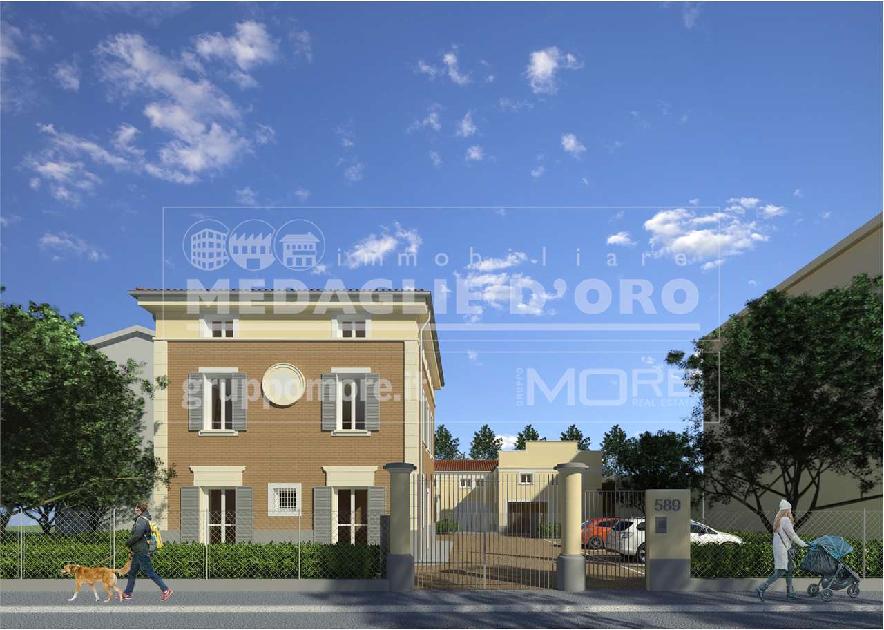 MO834-A3. Nostra esclusiva. Zona Santa Caterina, Via Repubblica di Montefiorino, in palazzina in Classe Energetica A4-NZEB di tre piani e undici unità vendesi attico "A3" al piano terzo di 162 mq. comm. con tre camere da letto e un terrazzo parzialmente loggiato di 48 mq. Caratteristica peculiare dell’intervento è l’adozione di avanzate tecnologie impiantistiche d’avanguardia volte al massimo contenimento del consumo energetico nel pieno rispetto dell’ambiente, infatti tutte le unità immobiliari saranno edificate in classe “A4” (secondo la delibera della Regione Emilia Romagna dgr. 20 luglio 2015, n. 967). Il capitolato prevede finiture di pregio tutte personalizzabili, pavimenti in ceramica grandi formati, rubinetterie e sanitari di design, riscaldamento a pavimento, aria condizionata, impianto per il ricircolo dell'aria meccanizzato puntuale, pannelli fotovoltaici, addolcitore acque e predisposizione per antifurto. Possibilità di personalizzazione degli spazi e delle finiture interne. Attico così disposto: ingresso, soggiorno con sbocco sul terrazzo, cucina abitabile, ripostiglio/lavanderia con accesso dal terrazzo, disimpegno notte, tre camere da letto, due bagni finestrati e secondo ripostiglio. Possibilità di scelta tra diverse autorimesse e posti auto a parte nel prezzo. Prezzo: 592.030 €. Consegna dicembre 2026. Per informazioni e visite: 340-7710085 dott. Corica Giuseppe, 348-8701469 Geom. Corica Maurizio,335-6444800 dott. Gollini Enrico, 335-6880908 geom. Fella Cristiano, 335-7853006 geom. Zara Costantino. In alternativa ulteriori info sul ns sito GRUPPOMORE.IT digitando CODICE DI RIFERIMENTO o inviaci una mail gestionecantieri-gruppomore@cataimm.it.it