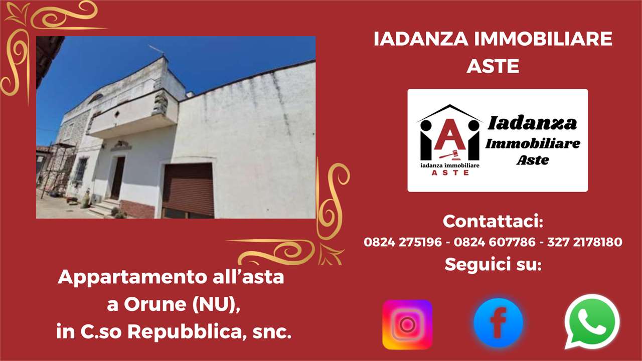 Codice Annuncio: AQR+ 24AQR+84 Offerta Minima: 171.750,00 Prezzo Base: 229.000,00 Valore di Perizia: 305.250,80 Data e Ora dellAsta: 26 maggio 2026 ore 12:00 Termine Presentazione Offerte: 25 maggio 2026 ore 12:00 ******************************************************************************** N.B: -Le foto e la geolocalizzazione presenti negli annunci potrebbero essere solo indicative. La documentazione ufficiale invece è disponibile su richiesta e solo essa farà fede sul piano legale .CONTATTARE LO STUDIO PER CONFERMA E PER MAGGIORI INFORMAZIONI ! -La vendita allAsta dellimmobile è stata disposta dal TRIBUNALE DI COMPETENZA e presuppone che linteressato - qualora intenda partecipare in autonomia - abbia piena conoscenza e consapevolezza dei contenuti di tutta la documentazione riguardante la PROCEDURA se non intende rivolgersi ad un Professionista del Settore ! -Per avere maggiori informazioni o per richiedere un sopralluogo potrai contattarci ai seguenti recapiti : Tel: 0824.607786 - 0824.275196 - 327.2178180 Mail: info@iadanzaimmobiliareaste.com Web: www.iadanzaimmobiliareaste.com ******************************************************************************** Casa unifamiliare all'asta situata nel Comune di Orune (NU), Corso Repubblica snc. L'immobile sorge in zona residenziale semicentrale dotata dei principali servizi di urbanizzazione primaria e secondaria. L'abitazione è disposta su due piani fuori terra ed è composta da due fabbricati contigui con accesso indipendente dalla corte comune. Il fabbricato principale si sviluppa su due livelli: al piano terra sono presenti ingresso con scala, cucina, soggiorno, corridoio, sala da pranzo, bagno, ripostiglio, centrale termica e cortile interno. Al piano primo sono presenti corridoio, due servizi igienici, quattro camere da letto, un balcone fronte strada ed un secondo balcone che consente l'accesso ad una ampia terrazza. È inoltre presente un secondo fabbricato pertinenziale posto al piano terra composto da cucina rustica, bagno e ripostiglio, oltre ad una tettoia adibita a deposito attrezzi. Il complesso immobiliare insiste su lotto di terreno di circa 467 mq e presenta una superficie commerciale complessiva di circa 412,83 mq. ////////////////////////////////SCOPRI LA DIFFERENZA//////////////////////////////////////// Perché sceglierci? PERCHE DI NOI TI PUOI FIDARE! Ti basta compilare la richiesta presente a lato dellannuncio e riceverai tutta lassistenza necessaria per ricercare ed acquistare limmobile che desideri! ////////////////// PROMOZIONI ESCLUSIVE ONLINE///////////////////////// Oltretutto Inviandoci la tua richiesta tramite il FORM DI CONTATTO, presente sulla destra di tutti gli annunci inseriti sul nostro SITO www.iadanzaimmobiliareaste.com otterrai automaticamente: - Una Consulenza gratuita iniziale. - Una polizza Protezione Casa in OMAGGIO! - La restituzione delle spese di istruttoria (solo in caso di aggiudicazione). - Uno Sconto del 3% sul nostro compenso finale. ///////////////// I NOSTRI PUNTI DI FORZA//////////////////////////////////////// Ciò che ci rende unici è il nostro approccio dedicato e professionale, nell'interesse esclusivo del cliente acquirente. Consulenza Gratuita e Professionale: Sempre disponibili per una consulenza senza impegno, con cortesia e professionalità. Indipendenza e Trasparenza: Operiamo su rappresentanza soltanto in favore dellacquirente, senza l'assillo di dover vendere a tutti i costi, garantendo imparzialità e competenze. La nostra reputazione è la tua prima garanzia. Visite Immobiliari Organizzate: Se desideri visionare un immobile, organizziamo la visita in modo completamente gratuito, occupandoci noi di tutte le formalità telematiche necessarie. Istruttoria accurata: A differenza di molti operatori del Settore che si limitano a "smaltire" immobili come "visti e piaciuti", il nostro approfondito esame della pratica (legale, tecnico, condominiale, fiscale, finanziario) ti assicurerà la tranquillità che cercavi. Noi redigiamo una "Relazione di Fattibilità Tecnico/Legale" prima di ogni partecipazione all'asta che sintetizza ogni aspetto della Procedura. Siamo gli unici insomma a "metterci la faccia". Assistenza dedicata passo dopo passo: Il nostro consulente esperto ti assiste in ogni fase, dalla ricerca all'aggiudicazione e anche oltre. Ricerca Personalizzata: Se non hai tempo per la ricerca, inviaci la tua richiesta tramite il SITO e lo faremo noi per te. Chiarezza Contrattuale: Siamo uno Studio di Consulenza Tecnico/Legale, non un'agenzia immobiliare tradizionale. Il rapporto è regolato da un incarico chiaro, sottoscritto dalle parti, senza sorprese per il Cliente. ////////////////// SERVIZI DI BASE INCLUSI/////////////////////////////////////// Offriamo un pacchetto completo per assisterti e consigliarti nella massima sicurezza: Consulenza gratuita (telefonica o su appuntamento). Analisi documentale approfondita in collaborazione con esperti legali, tecnici, notai e commercialisti. Assistenza completa per ogni adempimento: visite, pratiche, firme digitali, domande di partecipazione, saldi, tasse, consegna immobile, sanatorie, ecc. Visita dellimmobile organizzata gratuitamente dal nostro Studio in via telematica. Consulenza creditizia su misura con un esperto di Banca. Supporto Stragiudiziale per analizzare e gestire situazioni debitorie complesse. ------------------------------------------------------------------------------------------------------------------------ CONTATTACI SUBITO Per avere maggiori informazioni o per richiedere un sopralluogo potrai contattarci ai seguenti recapiti : Tel: 0824.607786 - 0824.275196 - 327.2178180 Mail: info@iadanzaimmobiliareaste.com Web: www.iadanzaimmobiliareaste.com