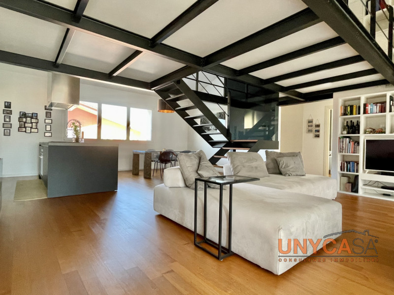 SELVAZZANO DENTRO: Per chi è alla ricerca di un immobile pregiato e con grandi spazi abitativi, proponiamo lussuoso attico contemporaneo con finiture di alto livello in zona centrale e comoda ai servizi. Si trova all'interno di un quartiere residenziale in via chiusa soli residenti, inserito in un contesto di sole quattro unità L'immobile si sviluppa su due livelli (primo e secondo): PIANO PRIMO: soggiorno-angolo cottura di 55 m² (con il caminetto a vista) e uscita su un bellissimo terrazzo abitabile (ideale per cene e pranzi), 2 camere da letto (matrimoniale e doppia), bagno finestrato (con doccia e uscita su loggia) e due ripostigli ad uso lavanderia. PIANO SECONDO: Salendo le scale troviamo un soppalco di 19 m² adibito a studio, 2 camere mansardate (una matrimoniale e una doppia) con altezze vivibili e travi a vista sbiancate (gli armadi presenti sono ad altezza standard) ed infine un bagno con doccia. PIANO SOTTOSTRADA: Garage doppio e posto auto esclusivo. L'immobile è dotato di: portone blindato, riscaldamento a pavimento con impianto centralizzato e contacalorie elettronico per contabilizzazione dei consumi, serramenti Internorm in legno e alluminio con tapparelle bianche motorizzate, tendaggio inserito all’interno del vetro, tende da sole a cascata (manuale), pavimentazione in Teak in zona giorno, zona notte e bagni, finiture dei bagni in gress e pietra naturale.